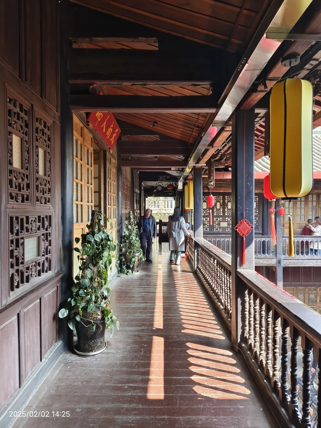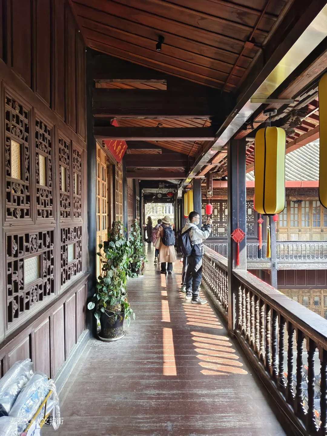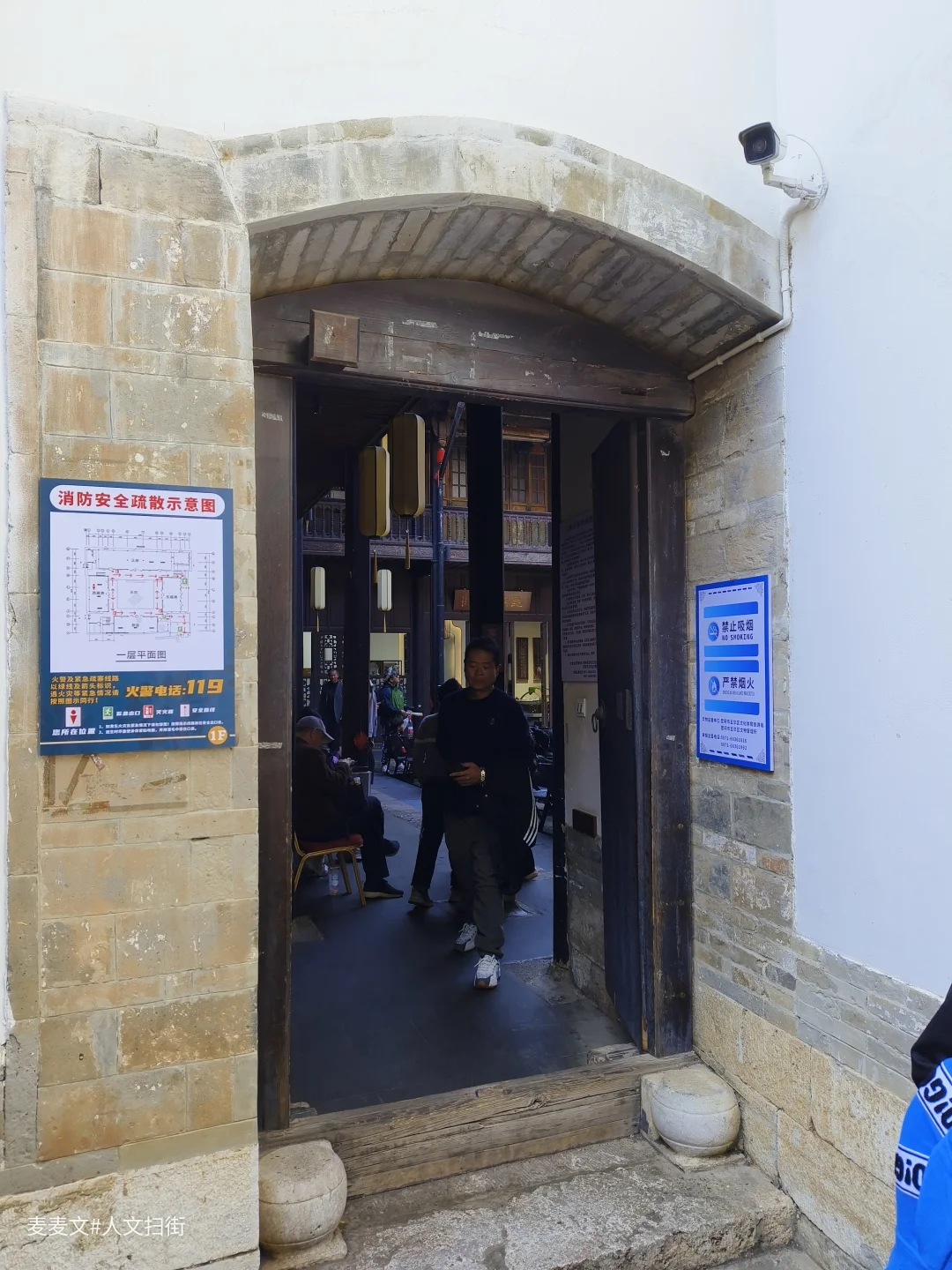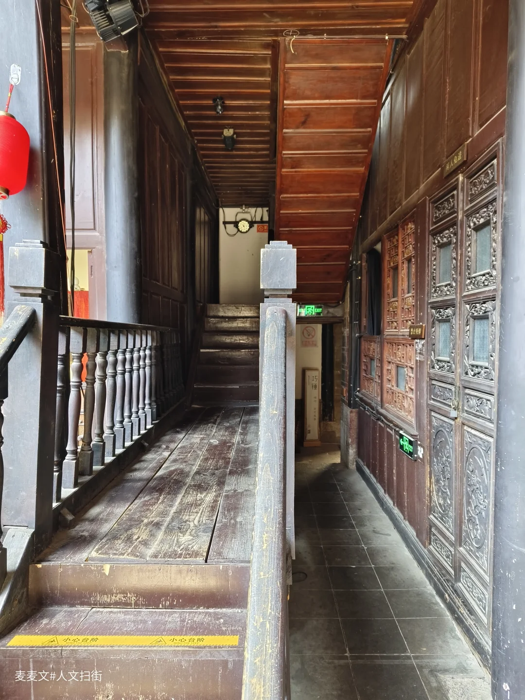 进入大门,是由宽敞的门堂和左右两间旁屋组成的倒座,倒座也和正面主房和左右厢房同样有二楼。大院的天井和楼上楼下的走廊都很宽敞,楼上楼下的正中房间都有雕刻精美的格子门,额枋等木构件上也有精美的雕刻。大院北面的正方,楼上当年是供奉释迦牟尼、观音菩萨和福禄寿三星的佛堂;楼下中间是供奉祖先牌位的地方。