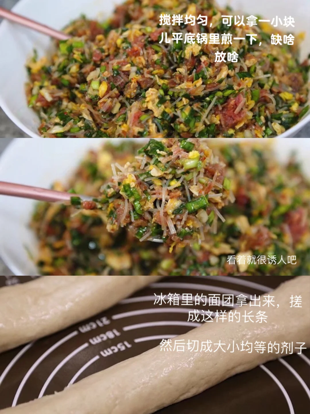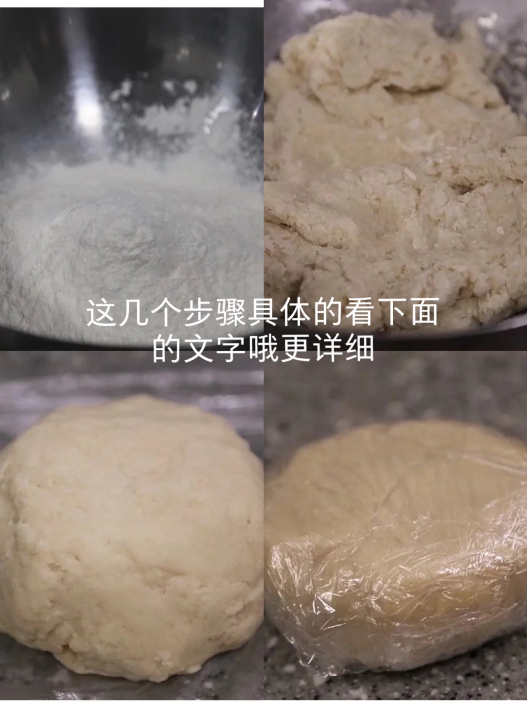 4.拿一个保鲜袋,放一丢丢没有味道的油进去别太多,把面团放进去,提前一晚做好放冰箱冷藏过夜5.瘦肉剁成细细的肉糜