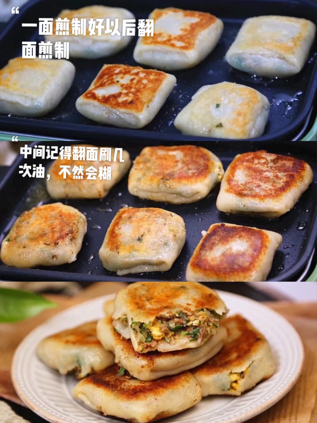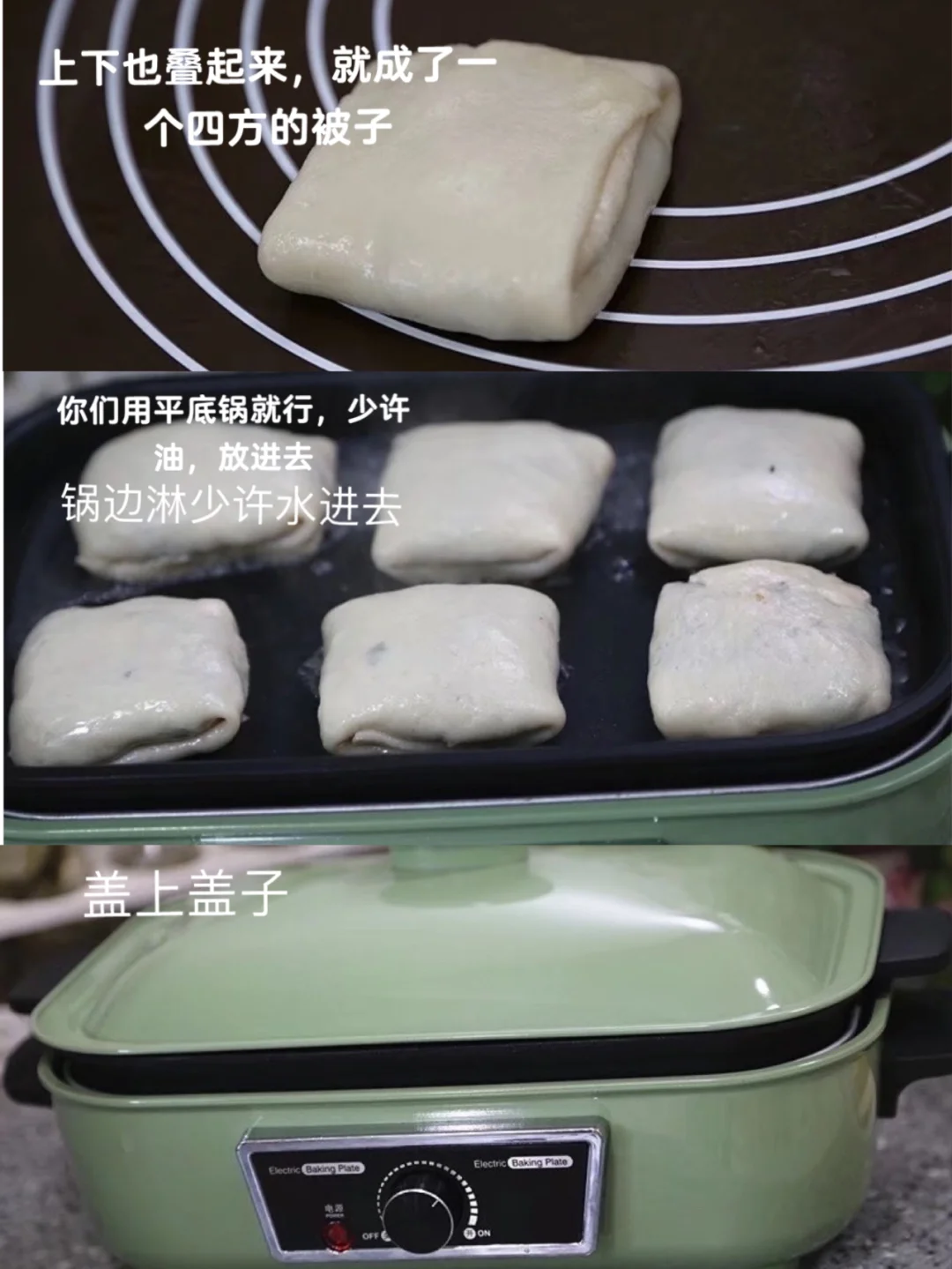 21.我用的是多功能锅煎的,你们用平底的就行 放少许油,做好的饼放进去 要注意的是如果你们做的比较大肉馅儿多的情况下担心不容易熟 可以在锅边淋少许水进去