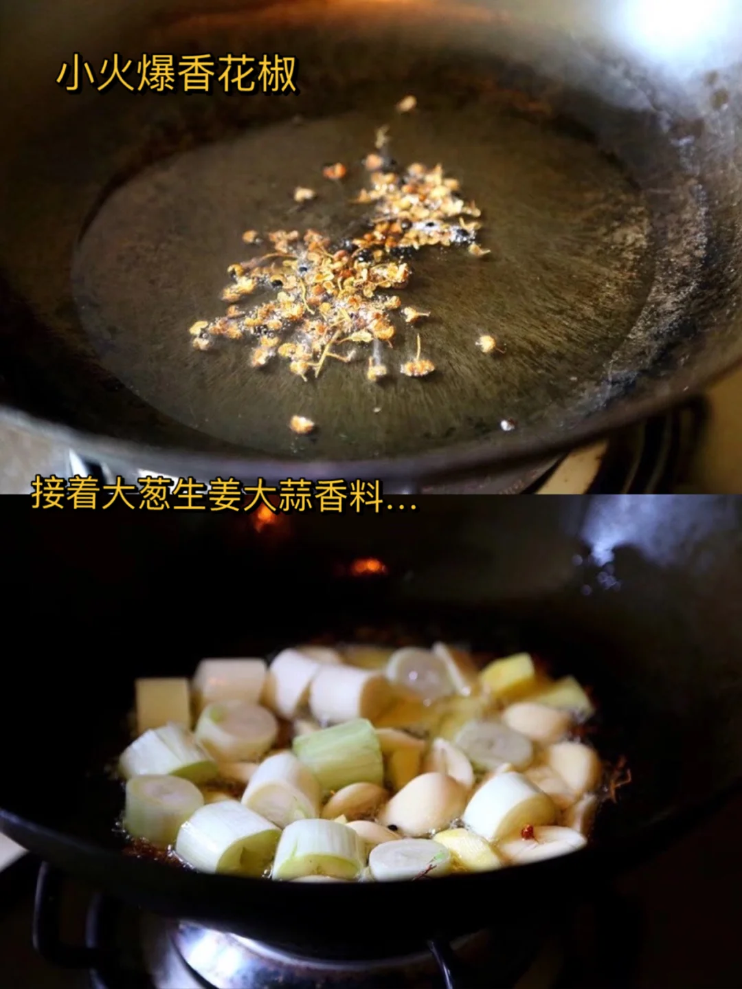 6.锅里倒入多一些的油,用的是我们乡下自己摘的花椒特别香 小火爆香