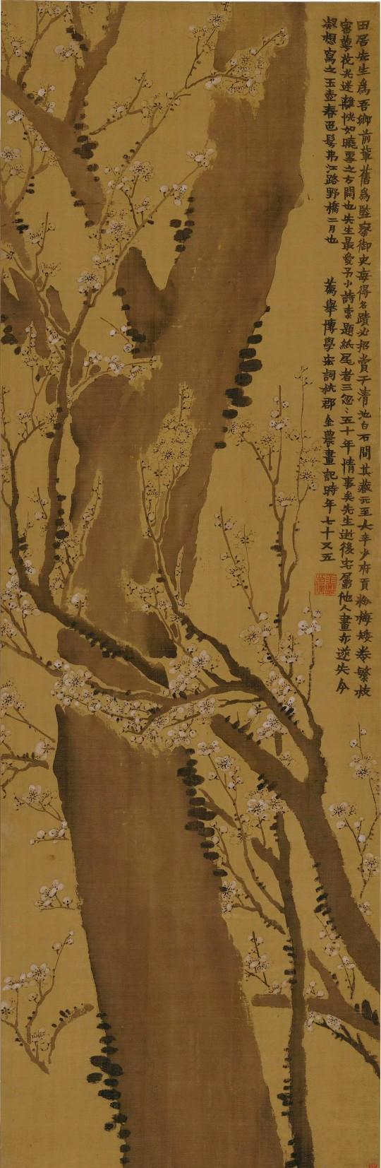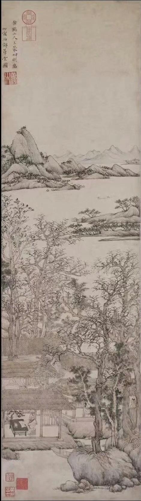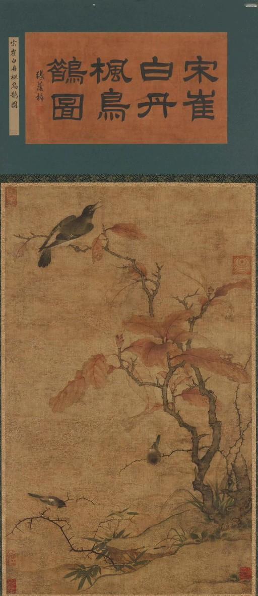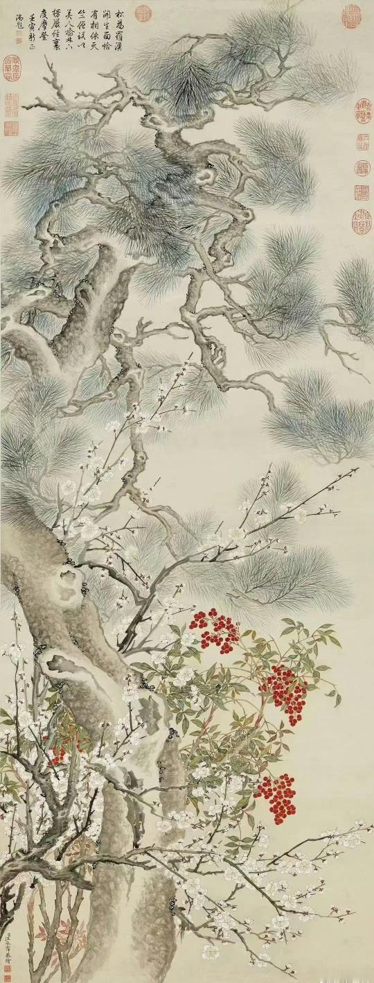清. 李方膺《百花呈瑞图》。 元. 佚名 《东山丝竹图轴》。 元 王蒙 《西郊草堂图轴 》 唐伯虎画《王献之休妻》 清 汪承霈 《岁寒三益图轴》 明 夏昶 《清风高节图轴》 清. 金农《梅树图立轴》。 清.罗聘《古木霜筠图立轴》。 宋. 崔白《丹枫鸟鹊图》。