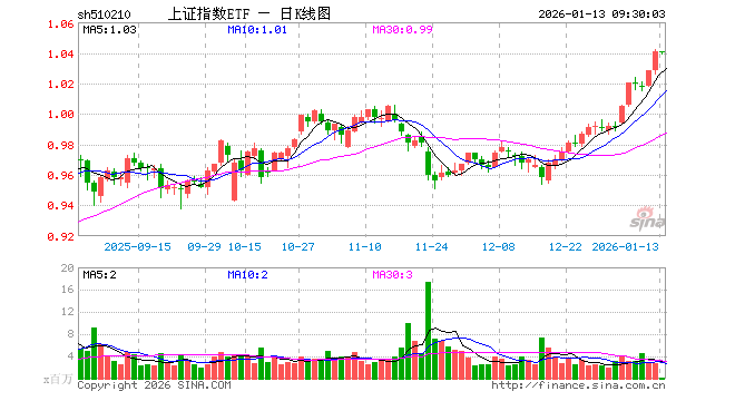 1月13日,上证指数ETF(510210)开盘涨0.00%,报1.041元。上证指数ETF(510210)重仓股方面,农业银行开盘跌0.27%,贵州茅台涨0.25%,中国石油涨0.20%,工业富联跌0.25%,恒瑞医药涨0.70%,三一重工涨0.62%,紫金矿业涨0.38%,中国银行跌0.18%,招商银行涨0.19%,邮储银行涨0.00%。