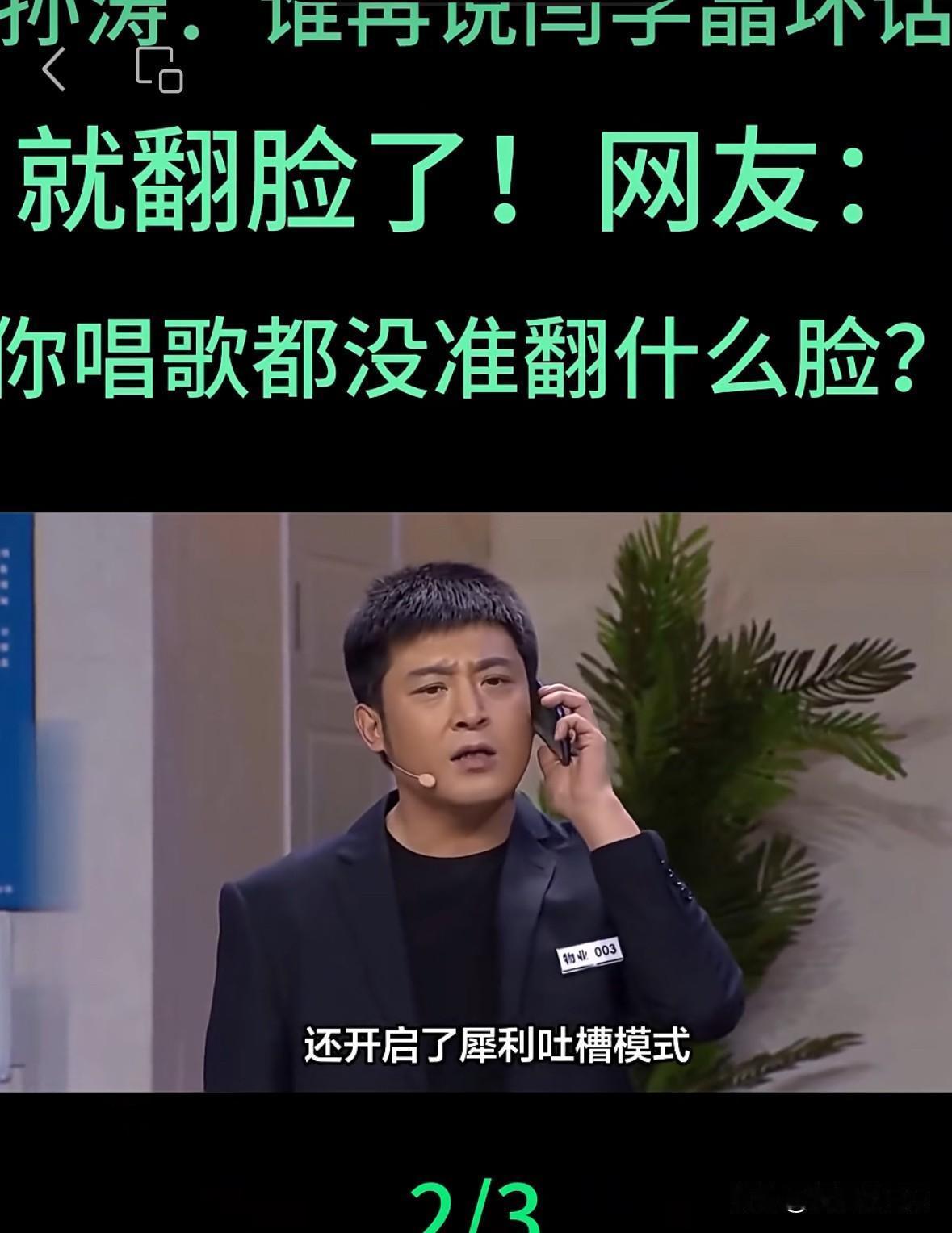 孙涛,这个时候能出来帮闫学晶说句公道话,我必须给他一个大大的赞。 孙涛本身也是一名优秀的演员,在这个节骨眼上,能出来说句公道话,说明他这个人值得交。 这个时候,大家都怕惹祸上身,如果这时候能出来仗义执言,能力挺的绝对是值得交往的好朋友,一辈子有一个这样的就值了。 这也说明闫学晶的人品在业内是得到大家认可的。 如果这个时候谁说话大家就攻击谁,估计对任何人都没有好处,也等于断了自己朋友支持的后路。 我感觉孙涛够爷们,是个值得深交的朋友,是一个敢说真话,不怕报复的好人。