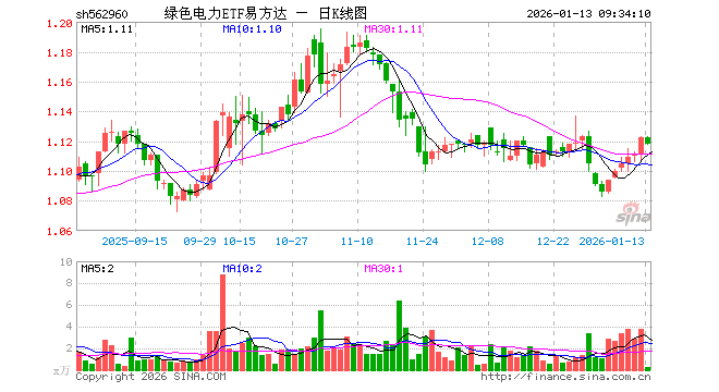 1月13日,绿色电力ETF易方达(562960)开盘涨0.00%,报1.122元。绿色电力ETF易方达(562960)重仓股方面,中国核电开盘涨0.33%,长江电力涨0.18%,三峡能源涨0.24%,国电电力跌0.20%,国投电力涨0.00%,华能国际涨0.00%,上海电力涨0.00%,川投能源涨0.00%,华电国际涨0.20%,浙能电力涨0.00%。