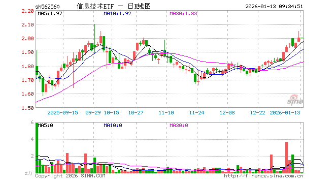 信息技术ETF(562560)业绩比较基准为中证全指信息技术指数收益率,管理人为华夏基金管理有限公司,基金经理为鲁亚运,成立(2024-03-27)以来回报为101.99%,近一个月回报为11.89%。