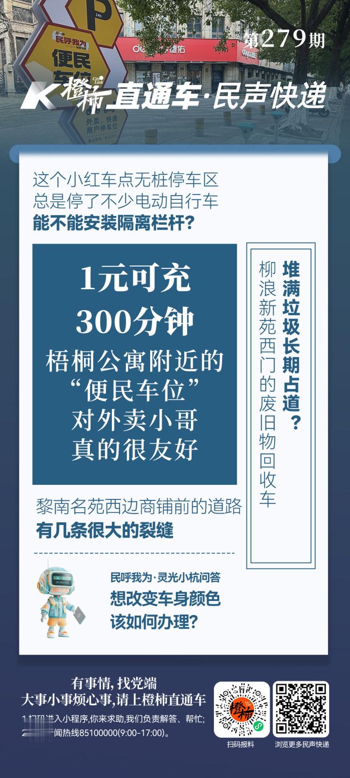 橙友“vQbdXrRz”在橙柿互动App橙柿直通车论坛发帖,为梧桐公寓附近的“便民车位”点赞:梧桐公寓处于文一路与学院路交会处,附近的人行道上安装了“便民车位”,为外卖小哥、快递小哥提供充电便捷服务。