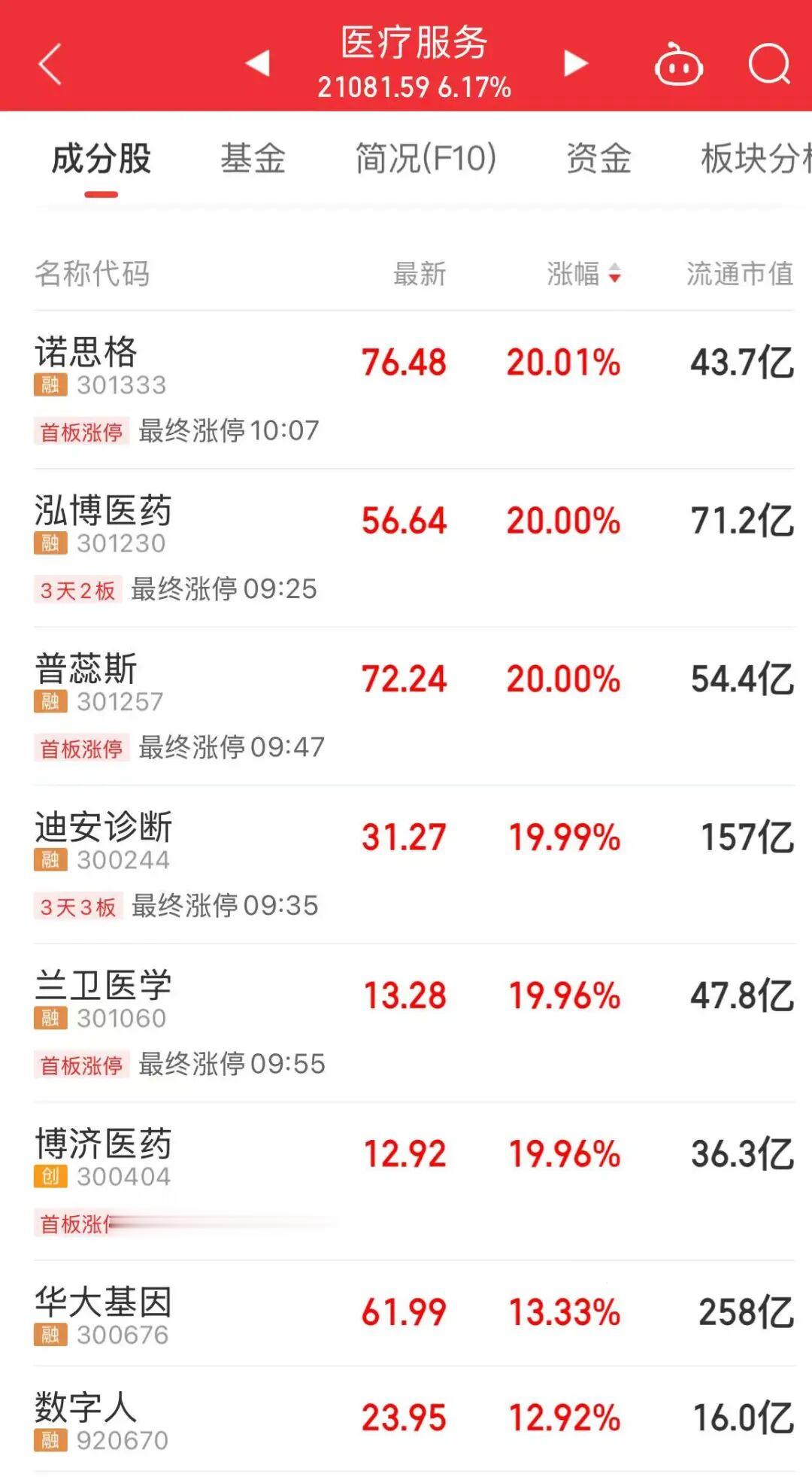 今天上午,医药股大涨,医疗服务、生物制品等板块涨幅居前。