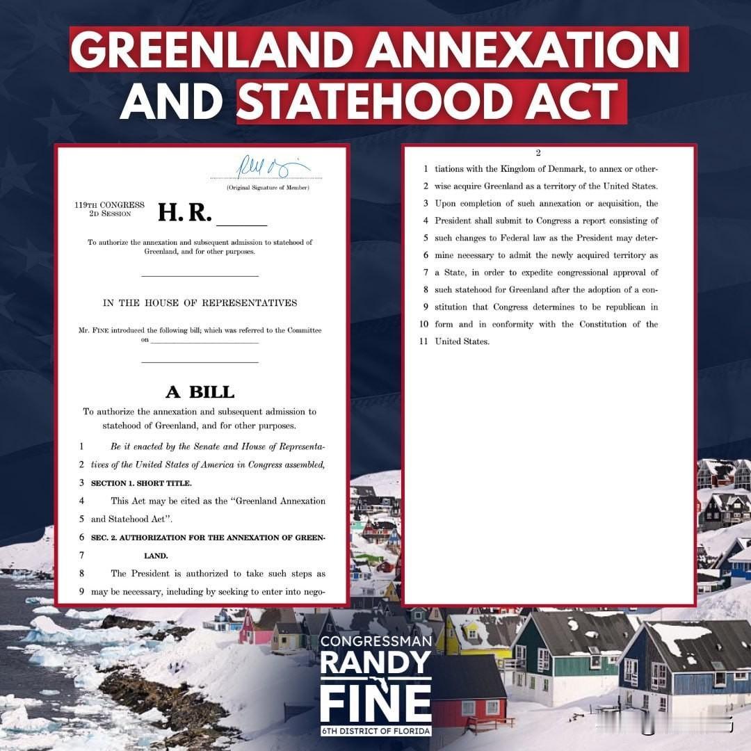 共和党众议员兰迪·芬恩提出《格陵兰岛吞并和建州法案》,要求吞并格陵兰岛,并将其纳入美国版图,因为格陵兰岛是对抗中俄在北极地区的“重要国家安全资产”。 来源:TabZ - Alternative Media 美国占格陵兰岛 格陵兰岛现状 格陵兰地缘战略 格陵兰地位 格陵兰岛问题 格陵兰主权 格陵兰岛私设