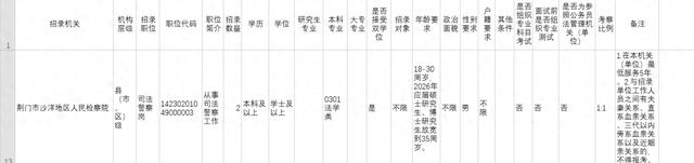 荆门市沙洋地区人民检察院2026年度考试录用职位表