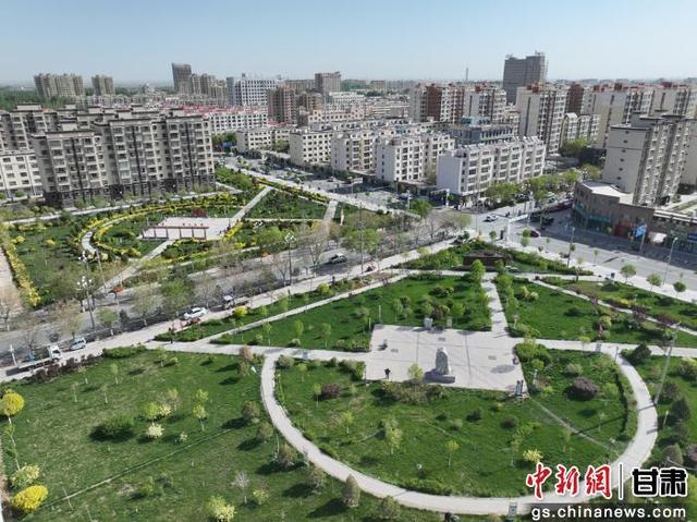 图为航拍瓜州县一处城市口袋公园。瓜州县委宣传部供图