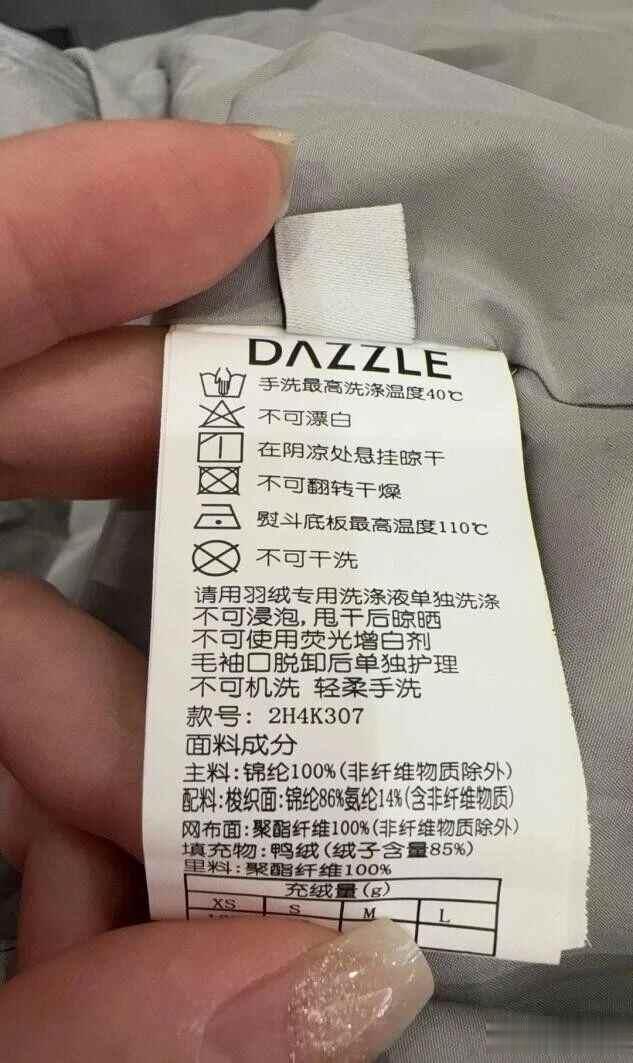 杭州市拱墅区市场监督管理局工作人员指出,目前尚不确定女子划破的衣服部位是否属于“大身”等填充鸭绒的部位,如果确认属于填充部位,且经检测,填充物成分不是鸭绒而是“棉”,则涉嫌标签不合格。“如果填充物里含棉等其它成分,就需要明确标出来。”