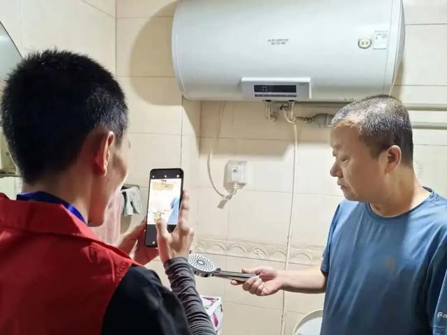 市民张阿姨家中,工作人员钱朝栋正在拆旧换新,约10分钟便更换完成。此前,他已提前与居民预定好时间,还实地测量换装前后器具流量变化情况。钱朝栋表示,原有的手持花洒底部没有限流器,存在出水量不均匀的问题,换装的新型手持花洒,底部安装了一个限流器,可以更好地控制水流量,并且达到了增压的效果。