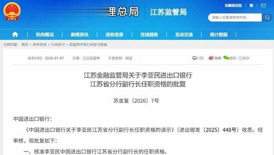 此外,近期监管任职批复信息显示,进出口银行有多位省分行干部获提任。