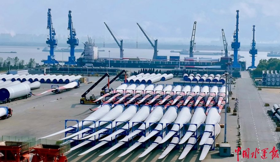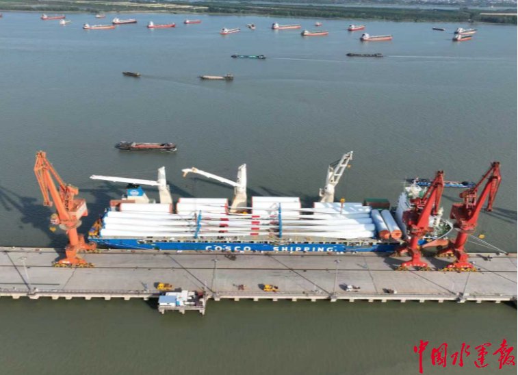 扬州海事强化服务担当,助力新突破。走访调研辖区风电设备生产、运输企业,安排专人负责提前对接码头、代理,积极推进“多船联议”“一船一案”作业模式,同时帮助积极协调扬州港4、5号泊位,助力江都港区圆满完成首次风电整机出口任务。助力“十四五”期间,风电设备出口总量突破1100万方、扬州本地生产风电叶片首次实现出口、133米超量型2XX风电叶片安全出运成功刷新长江流域港口最长风电叶片维护出港纪录。
