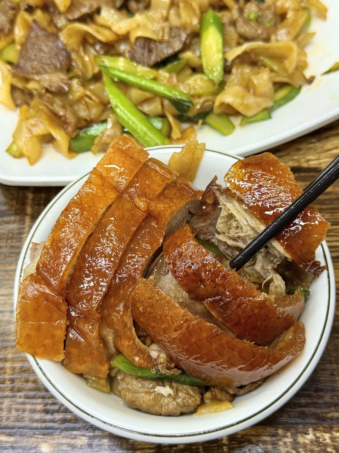连吃三天了!!😭就藏在五一新村,不起眼但是好吃死的潮汕餐馆!!跟朋友反反复复去过很多次,晚上八九点过去,依旧坐满人 烧鹅外脆里嫩吃起来吼香啊~还有烤乳鸽、蚝仔煎、干炒牛河!一吃一个不吱声(真禾味老伍)