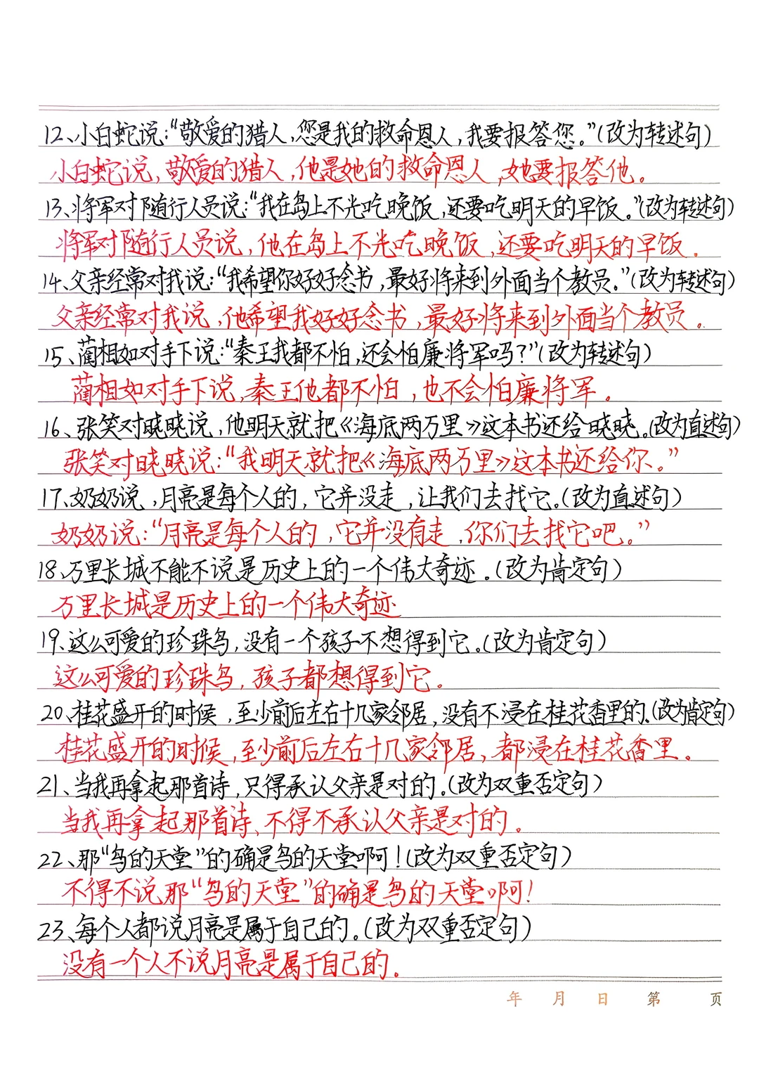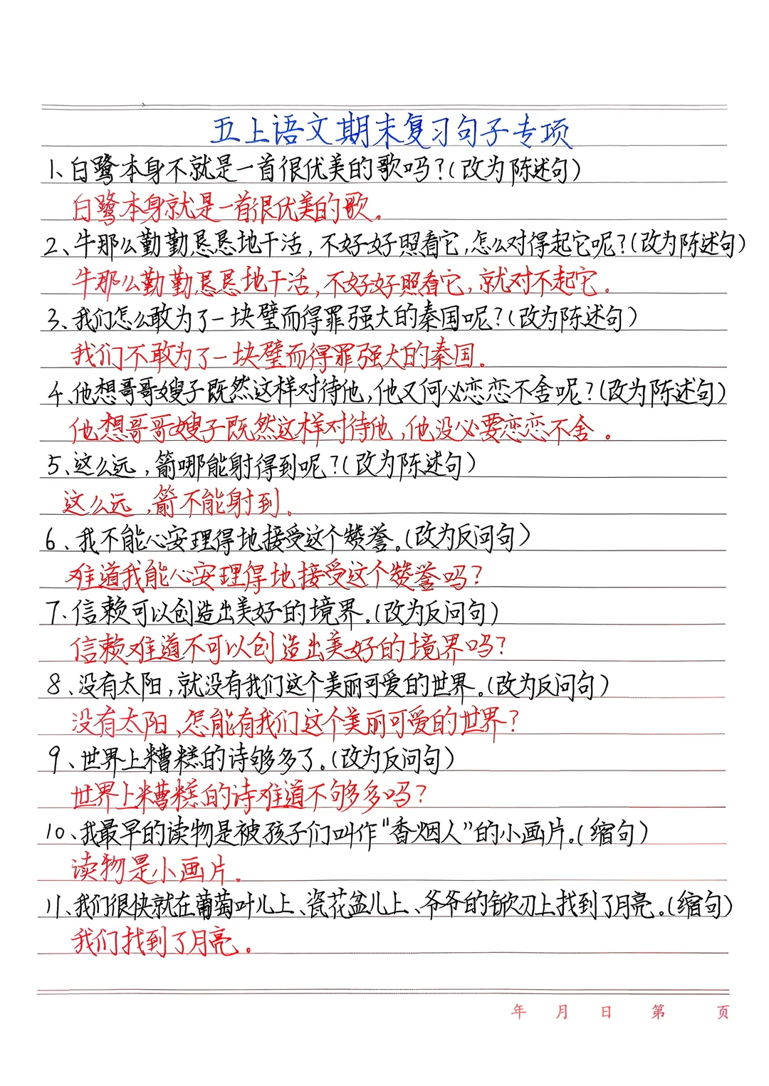 五上语文期末句子练习