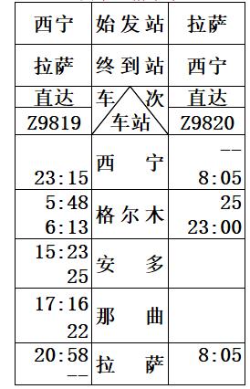 1.2026年1月14日、21日西宁至拉萨间加开Z9819次临时旅客列车,1月16日、23日拉萨至西宁加开Z9820次临时旅客列车。