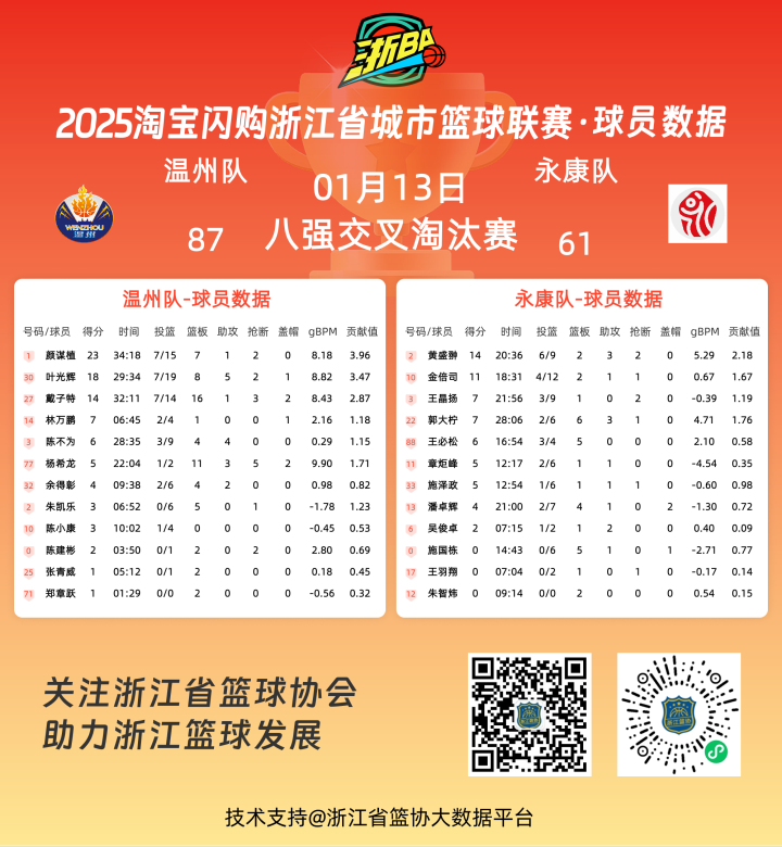 恭喜温州队拿下八强淘汰赛的第一场胜利。但今晚永康队不负“钢铁侠”之名,表现十分顽强。