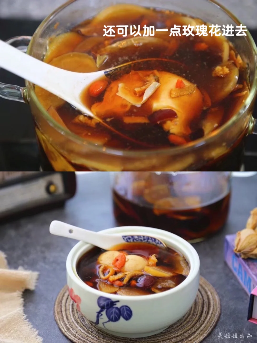 13.还可以放一些玫瑰花进去也不错的 这款茶苹果的加入会让这款茶变得香甜很多哦 每天上午来上一大碗立马精神气十足 但是晚上就别喝了,俗话说晚上吃姜犹如pishuang嘛 还有体质热的人也不能多喝