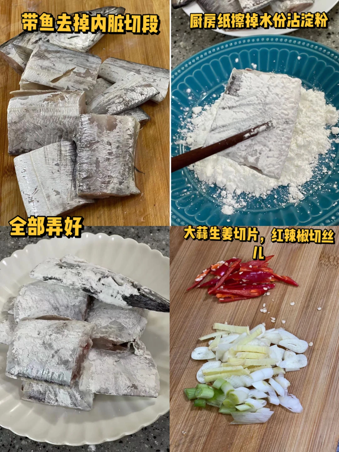 1.带鱼清洗干净,内脏去掉,然后剁成均匀的长段