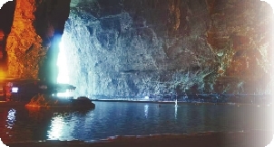 踏上一条长长的窄窄的木船,穿行洞中,木船几乎贴着岩壁行走,抬头是高耸的洞顶,船底是湍急的清江,耳边是奔流不绝的水声,在这方暗黑的山洞,真的让人心跳加快,总担心有什么事会在这方山洞、这条暗河中发生!