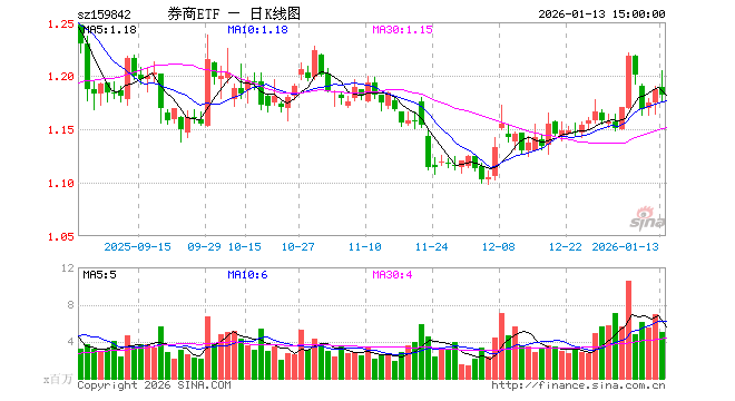 1月13日,券商ETF(159842)跌0.42%,成交额5.97亿元。当日份额减少600.00万份,最新份额为89.23亿份,近20个交易日份额增加13.81亿份。最新资产净值计算值为105.32亿元。