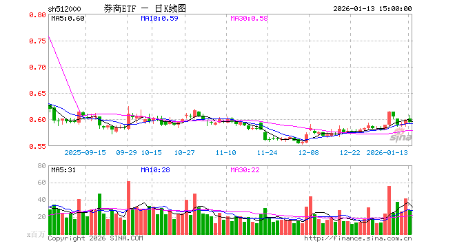 1月13日,券商ETF(512000)跌0.67%,成交额16.57亿元。当日份额减少2.28亿份,最新份额为668.90亿份,近20个交易日份额减少27.82亿份。最新资产净值计算值为397.93亿元。