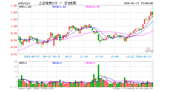 1月13日上证指数ETF(510210)份额增加6300.00万份,最新份额54.50亿份,最新规模56.19亿元