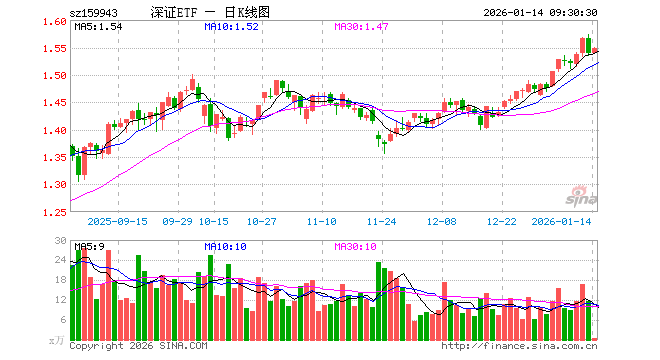 1月14日,深证成指ETF大成(159943)开盘涨0.00%,报1.539元。深证成指ETF大成(159943)重仓股方面,宁德时代开盘涨0.29%,美的集团涨0.00%,中际旭创涨1.64%,东方财富跌0.53%,新易盛涨1.25%,立讯精密跌0.70%,比亚迪跌0.39%,阳光电源跌0.40%,五粮液跌0.11%,胜宏科技涨1.22%。