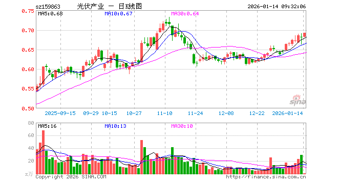 光伏ETF基金(159863)开盘跌0.15%,重仓股阳光电源跌0.40%,隆基绿能跌0.38%