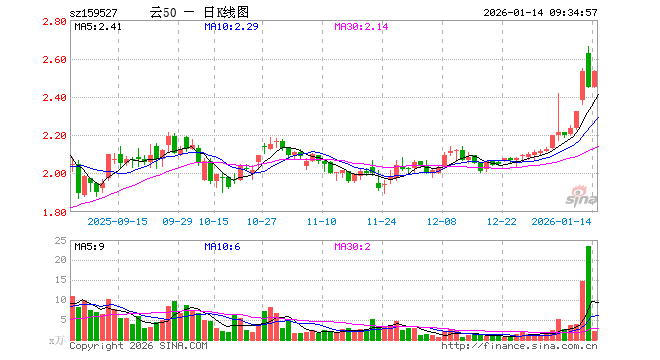 1月14日,云计算ETF广发(159527)开盘跌0.08%,报2.448元。云计算ETF广发(159527)重仓股方面,中际旭创开盘涨1.64%,新易盛涨1.25%,科大讯飞涨0.61%,中科曙光涨0.00%,浪潮信息涨0.84%,金山办公跌0.22%,紫光股份涨0.42%,恒生电子跌0.55%,润和软件涨0.96%,拓维信息涨0.00%。