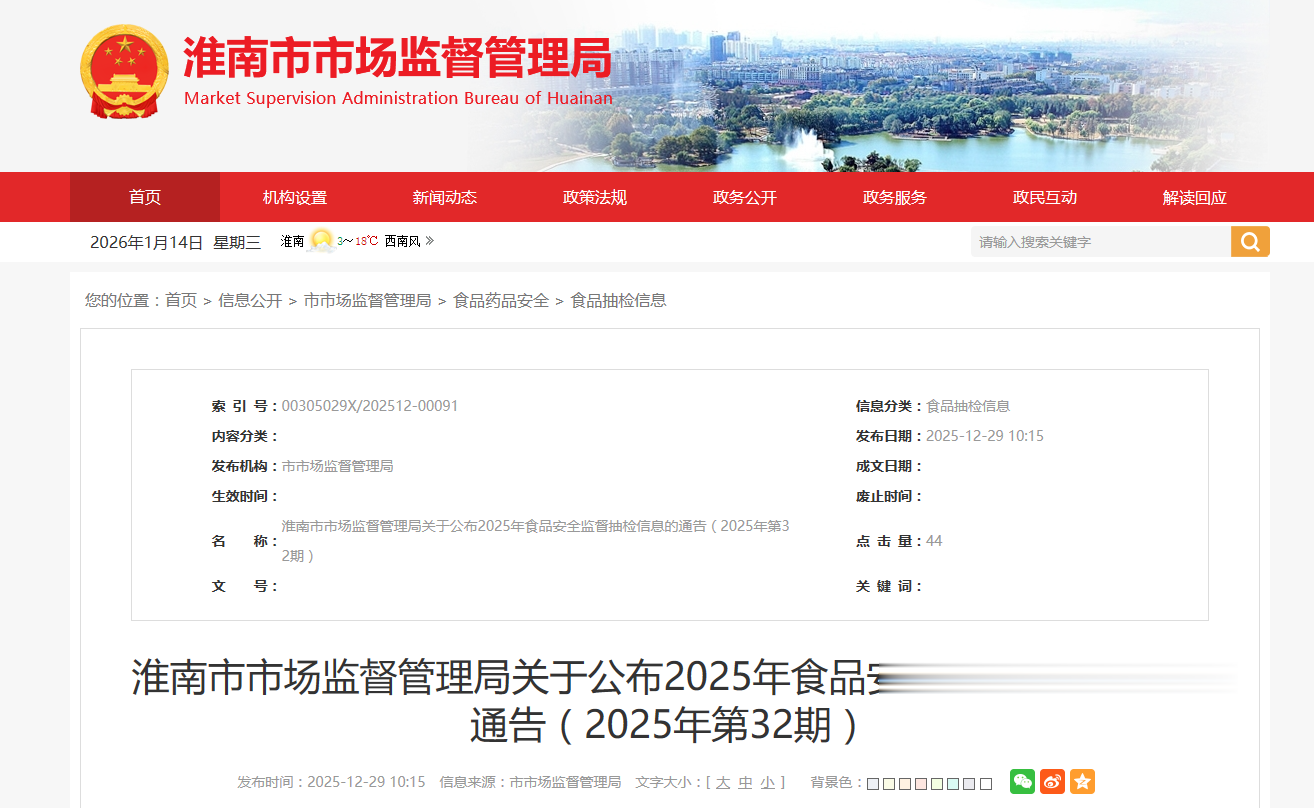 淮南市市场监督管理局关于公布2025年食品安全监督抽检信息的通告(2025年第32期)_政务公开_淮南市市场监督管理局