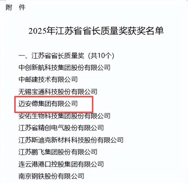 经过20多年全球工程实践,迈安德的足迹已遍布东南亚、非洲、南美及中东等80多个国家和地区,其卓越价值与可靠交付能力已得到不同地域、不同规模客户的反复验证和认可。凭借对高质量发展的长期坚持,迈安德于近日荣膺2025年江苏省省长质量奖。这不仅是一份权威认可,更标志着其在全球市场锤炼出的品质承诺,获得了来自本土的可信背书。(本文内容为推广)