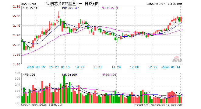 1月14日,截止午间收盘,科创芯片ETF基金(588290)涨3.87%,报2.575元,成交额2.13亿元。科创芯片ETF基金(588290)重仓股方面,海光信息截止午盘涨5.96%,澜起科技涨3.38%,中芯国际涨2.25%,寒武纪涨1.56%,中微公司涨5.03%,芯原股份涨7.57%,华虹公司涨4.07%,沪硅产业涨1.98%,华海清科涨4.89%,晶晨股份涨3.40%。