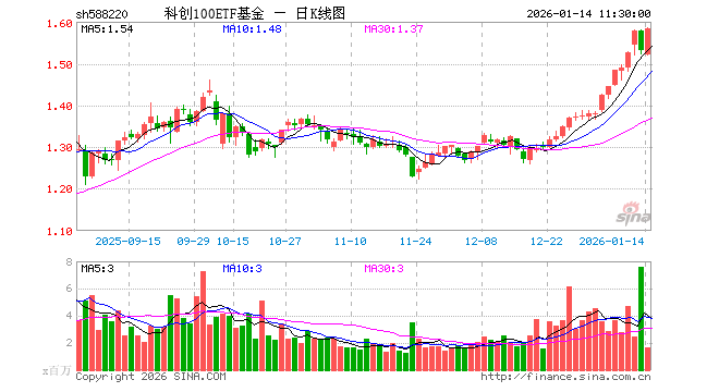 1月14日,截止午间收盘,科创100ETF基金(588220)涨3.40%,报1.583元,成交额2.64亿元。科创100ETF基金(588220)重仓股方面,华虹公司截止午盘涨4.07%,百济神州涨1.20%,东芯股份涨3.10%,睿创微纳涨0.71%,翱捷科技涨4.96%,安集科技涨3.27%,中科飞测涨0.75%,源杰科技涨1.99%,芯源微涨6.77%,云天励飞涨5.04%。