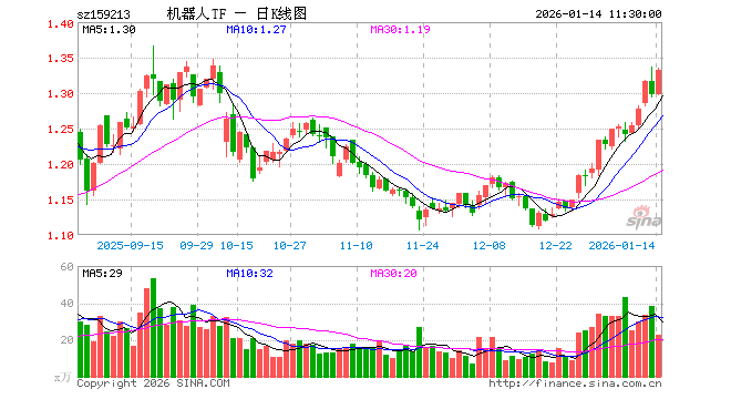 1月14日,截止午间收盘,机器人ETF基金(159213)涨2.62%,报1.332元,成交额3015.56万元。机器人ETF基金(159213)重仓股方面,汇川技术截止午盘涨1.86%,科大讯飞涨5.03%,石头科技涨1.78%,大华股份涨3.33%,中控技术涨11.13%,大族激光涨4.93%,双环传动跌0.07%,科沃斯涨1.92%,机器人涨2.47%,云天励飞涨5.04%。