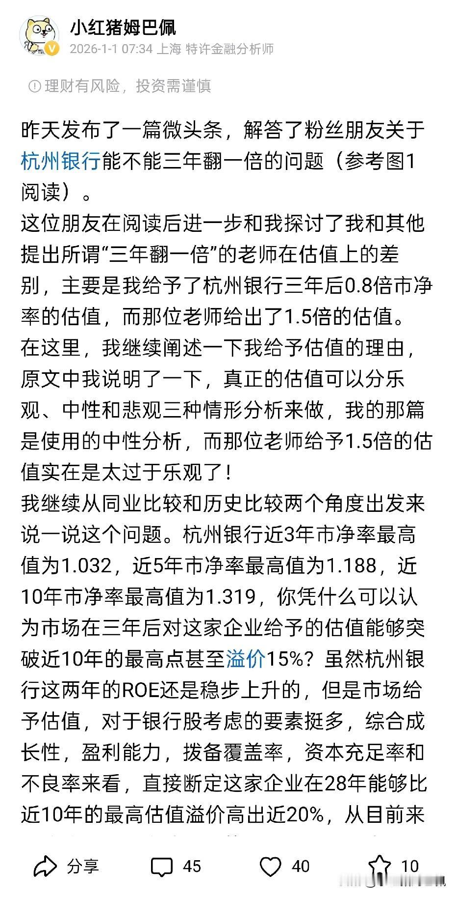 今天,借合合信息翻倍的契机,想和大家讲个故事 去年8月18日有朋友在评论区问我投资标的,我提到了AI应用板块中我看好的企业。考虑到为粉丝负责,9月10日我又追加了一篇长文,仔细阐述了我的逻辑。因为我的内容很丰富,我也不想像有些人那样一年365天就是那么几句话,所以我的篇幅放在一家具体公司上,是很少见的。 写清楚逻辑是因为我不想对粉丝仅仅授人以鱼,追求授之以渔。今天盘中合合信息已经触及将近370元,距离我写长文时候的价格稳稳实现了翻倍,精确来讲收益率110%以上,历时4个多月而已。特殊的日子里,除了高兴外,还想给大家讲个故事,避免大家走些弯路: 就在1-2个月前,一位粉丝一直问我,杭州银行能否翻倍?我仔细看了数据并详细列出过程后,告知了结论。可能结论没有达到粉丝的心理预期,他又提示我另一位“xx1987"老师的推算,问我作何感想,我看后又写了一篇,觉得还是偏乐观了一些。 在这个故事里,结合我曾详细提了合合信息,我觉得我一直提示大家的行为金融学”熟悉性偏差“和”确认性偏差“暴露无遗。一方面,彼时的市场上,如果要寻求收益乃至翻倍,可能会有很多很多比杭州银行更适合的标的,但是由于你每天接受的信息就是那几个吹这家企业的”老师“的,慢慢地这家企业在你心里变成了最熟悉的,直接导致了你难以接受更多更新更合理的信息;另一方面当你听到有人说这个公司好,并且建仓后,便陷入了积极寻找更多肯定的过程中,当我推算出来的结论没有那么乐观时,便会再度和我确认,希望我去看下更乐观的内容并进一步肯定。 错过一个AI应用的优质企业没关系,市场上永远不缺乏机会。最可怕的是你的眼睛因为长期接受那些错误的信息已经被蒙蔽,甚至在我前期质疑集中持有三家哪怕”最优秀“的城商行是多不可取时,有人会反驳我并类比这几家银行为北大清华,属于A股最好标的,这真的已经是中毒太深!走在错误的道路上浑然不知,那才是无望的,首先应该做的,就是取关拉黑我反诈的那些人!