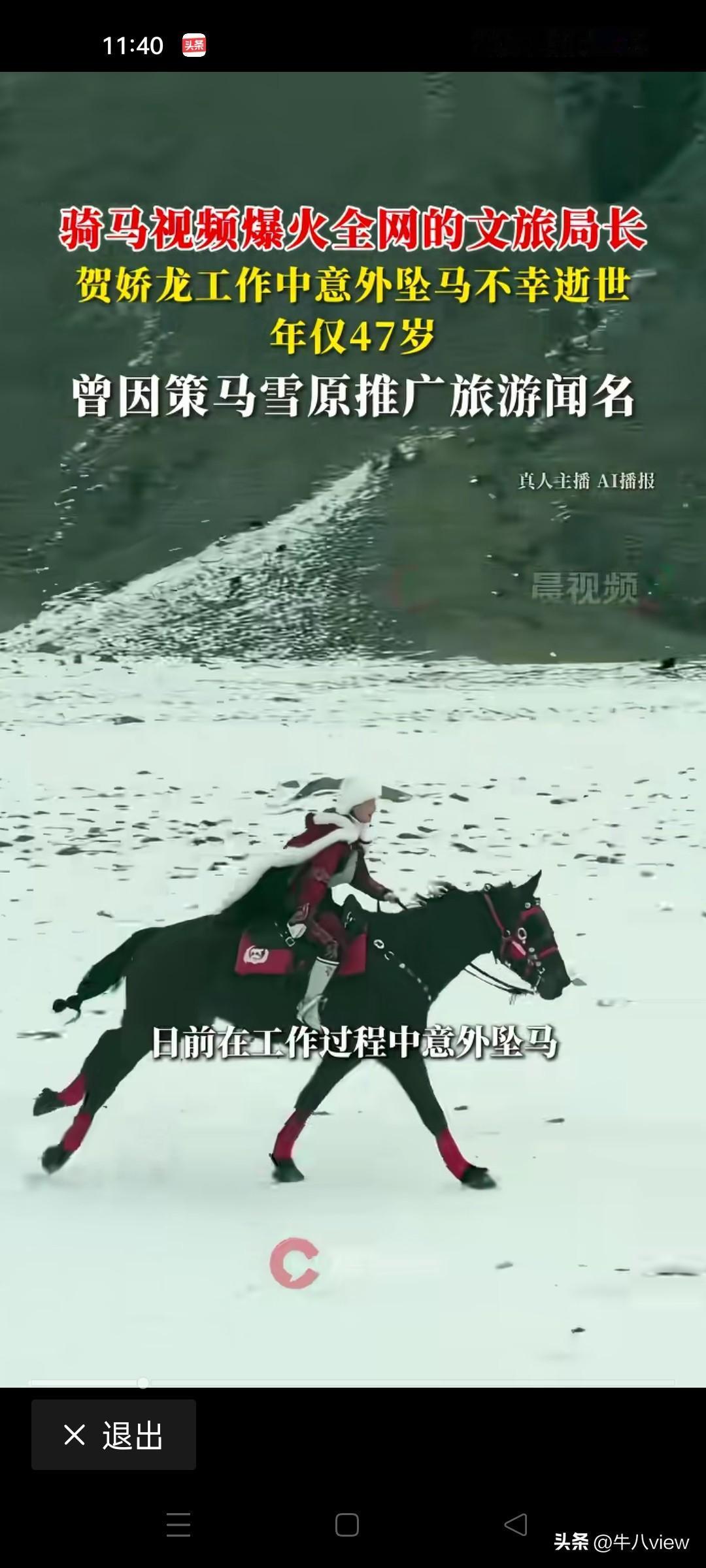 网传贺娇龙坠马逝世,享年47岁!澎湃新闻,晨视频报道新疆昭苏县文旅局贺娇龙1月13日骑马发生意外坠马遇难,享年47岁。 看到这个悲伤的消息正在感叹世事难料,对贺娇龙突然离世觉得遗憾! 一个非常努力的网红局长为了宣传新疆骑马拍视频、带货,收入全部捐给当地,这么接地气的好局长突然意外,我是真的不愿相信这个悲伤的消息!为了证实该事件是否属实,我搜到了新疆当地官方媒体证实,贺娇龙确实坠马伤势严重,正在医院,逝世的消息不实。希望大家不要传谣! 澎湃新闻等看来是是犯了一个低级错误,作为有影响力的媒体就应该秉持客观,真实的原则,千万不可果断给结论,否则闹出乌龙让人贻笑大方!