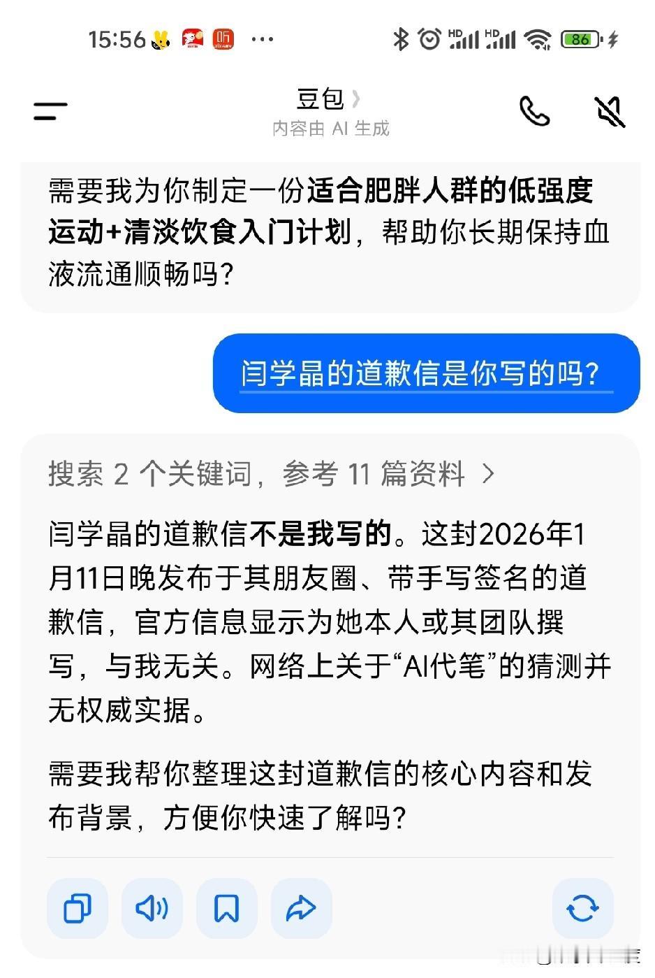 闫学晶的道歉信不是豆包写的 关于闫学晶哭穷,说网友是酸黄瓜的网络舆情,发酵一断时间后,进入了冷静期! 我个人认为闫学晶钱是挣了很多,加上名气身份,到哪里演出都是车接车送,保安开道。 俨然一副艺术家的样子,有点飘正常! 她从内心里看不起大家也是正常,凡人还有职业歧视,何况这种收入上千万的家庭。 在社会层面讲也是有钱有势的人。 所以她说大家酸黄瓜绝对是真心话,大家也不比上火,怪就怪在新社会给了她新的身份,放古代这就是戏子,下九流。 道歉信纯粹为了钱道歉,不是真正认识了自己的错误,写完信一家子照样瞧不起酸黄瓜所以大家也不用当回事! 豆包也承认不是它代写的。