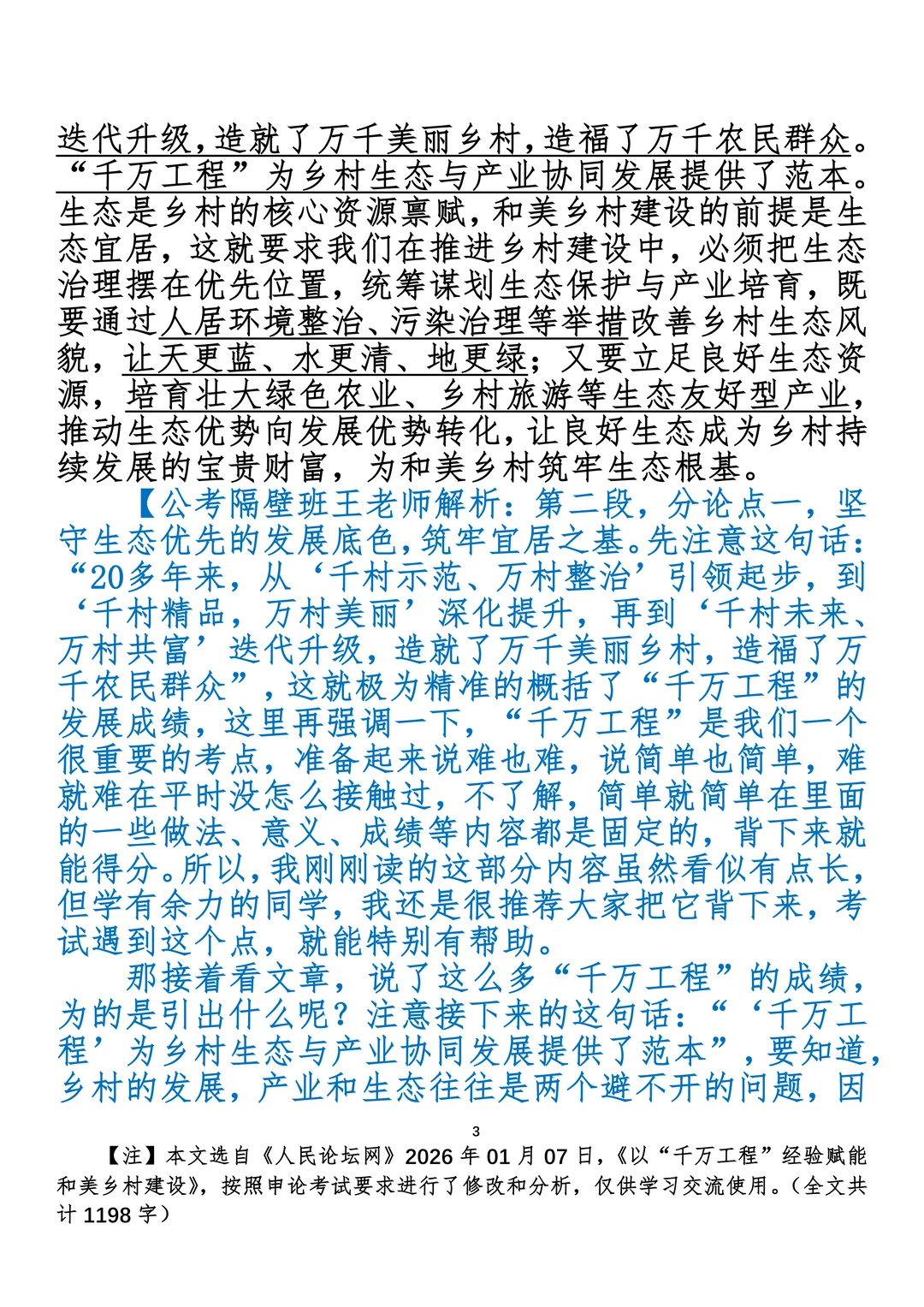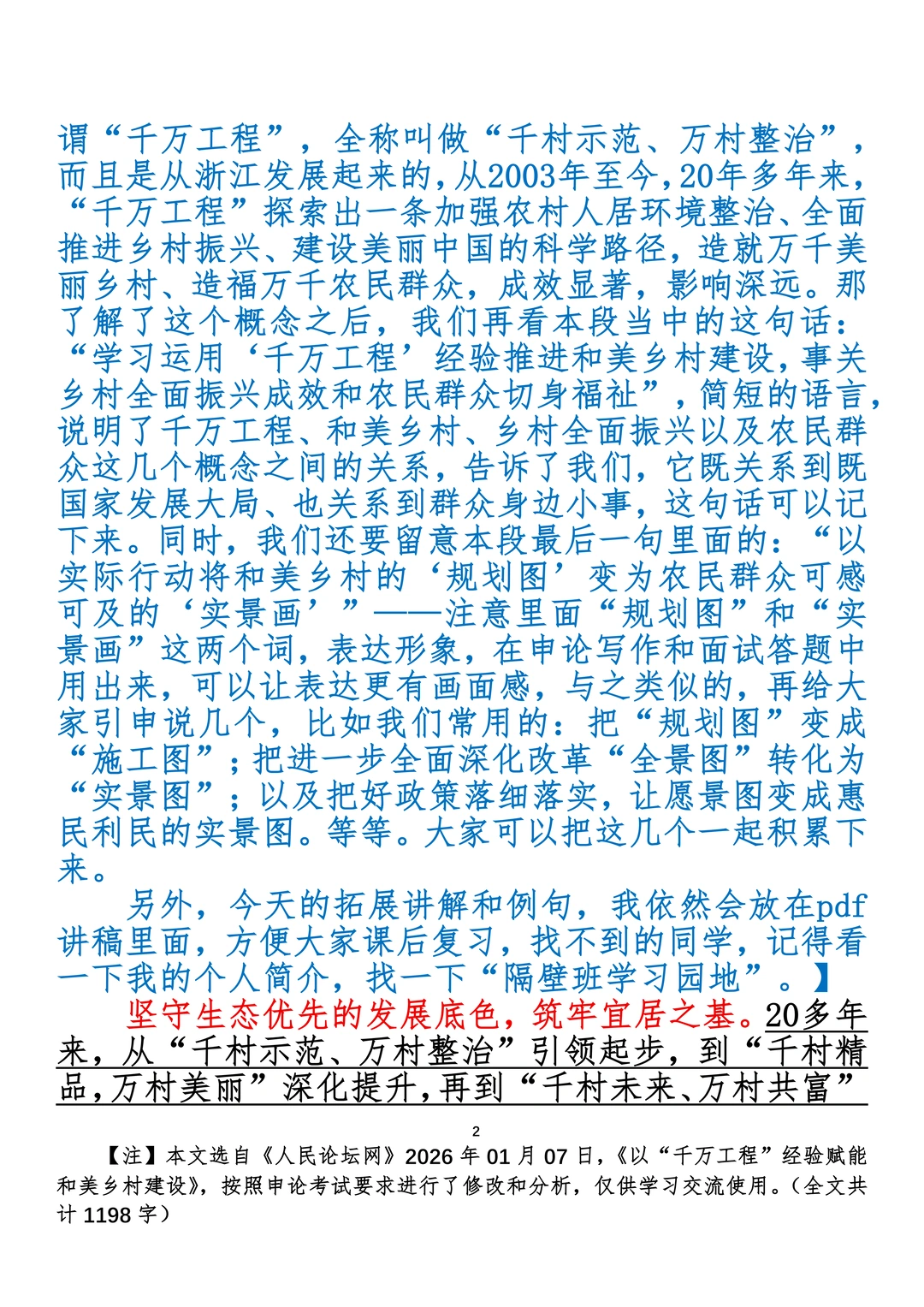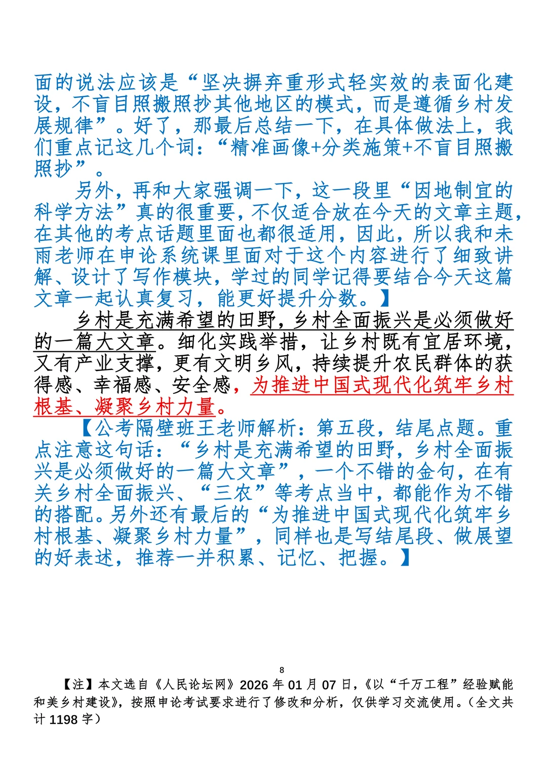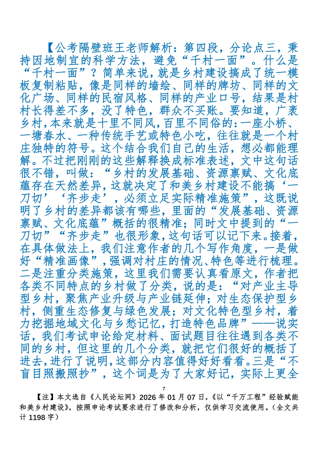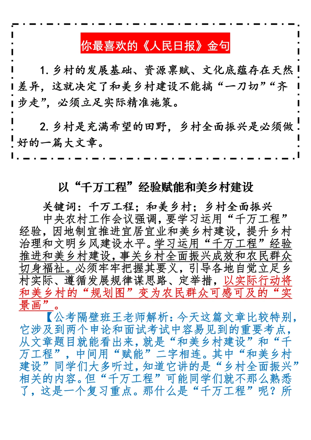 如何抄写:每日抄写文章发在“公考隔壁班王老师”账号,红色字是重点句和结构句,黑色字是正文,蓝色字是解析,大家抄写时不必抄蓝色字。建议先通读全文,做到心中有数再开始抄写,效果会更好。 关于文章:抄写文章来源于人民日报,但每篇文章我都根据申论考试要求进行了修改:一是重写或修改开头、结尾;二是统一段首句句式结构;三是调整段落字数,使文章结构更均衡;四是简化复杂长难句,使之更具可模仿性。每篇文章无论修改多少,都是基于申论考试要求,毫无对人民日报文章品评之意。(此处致敬人民日报)