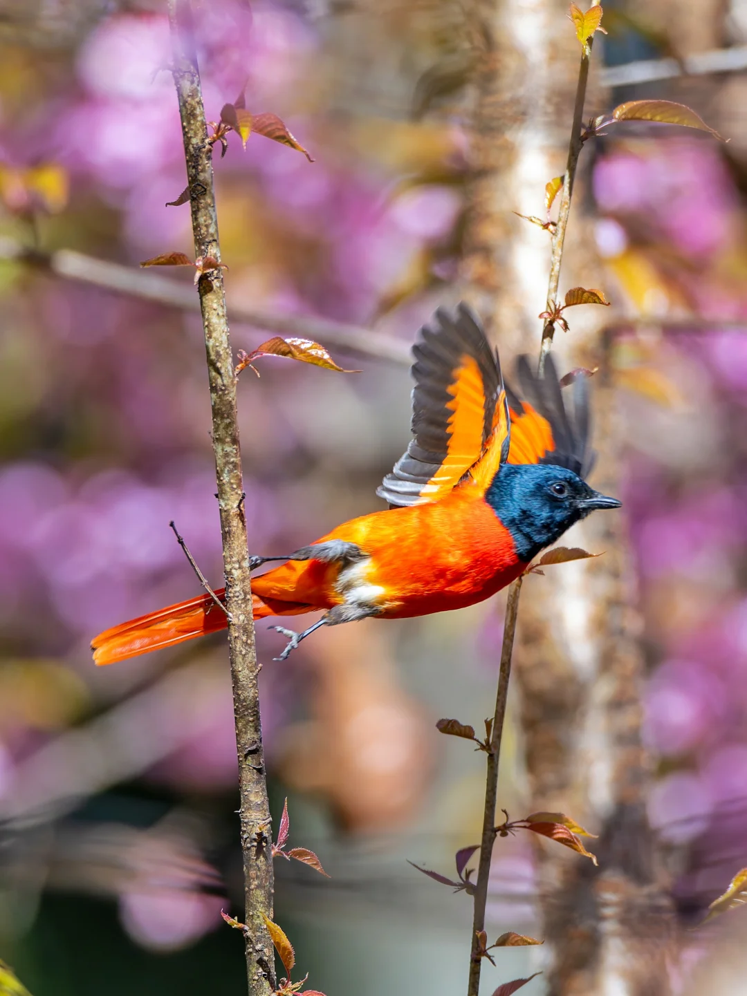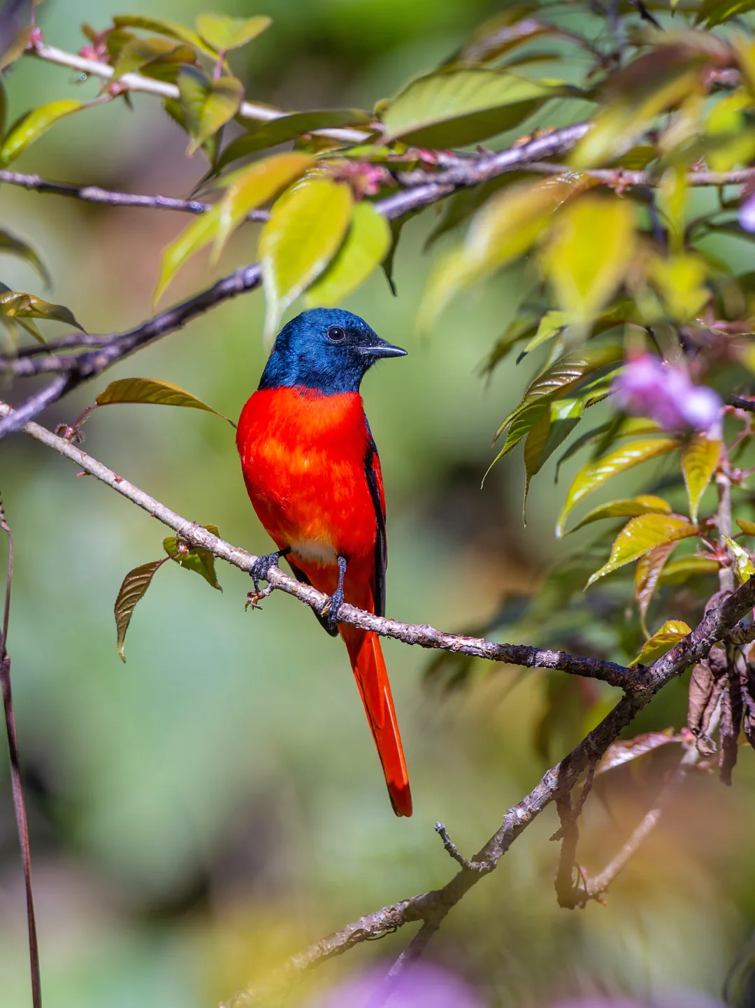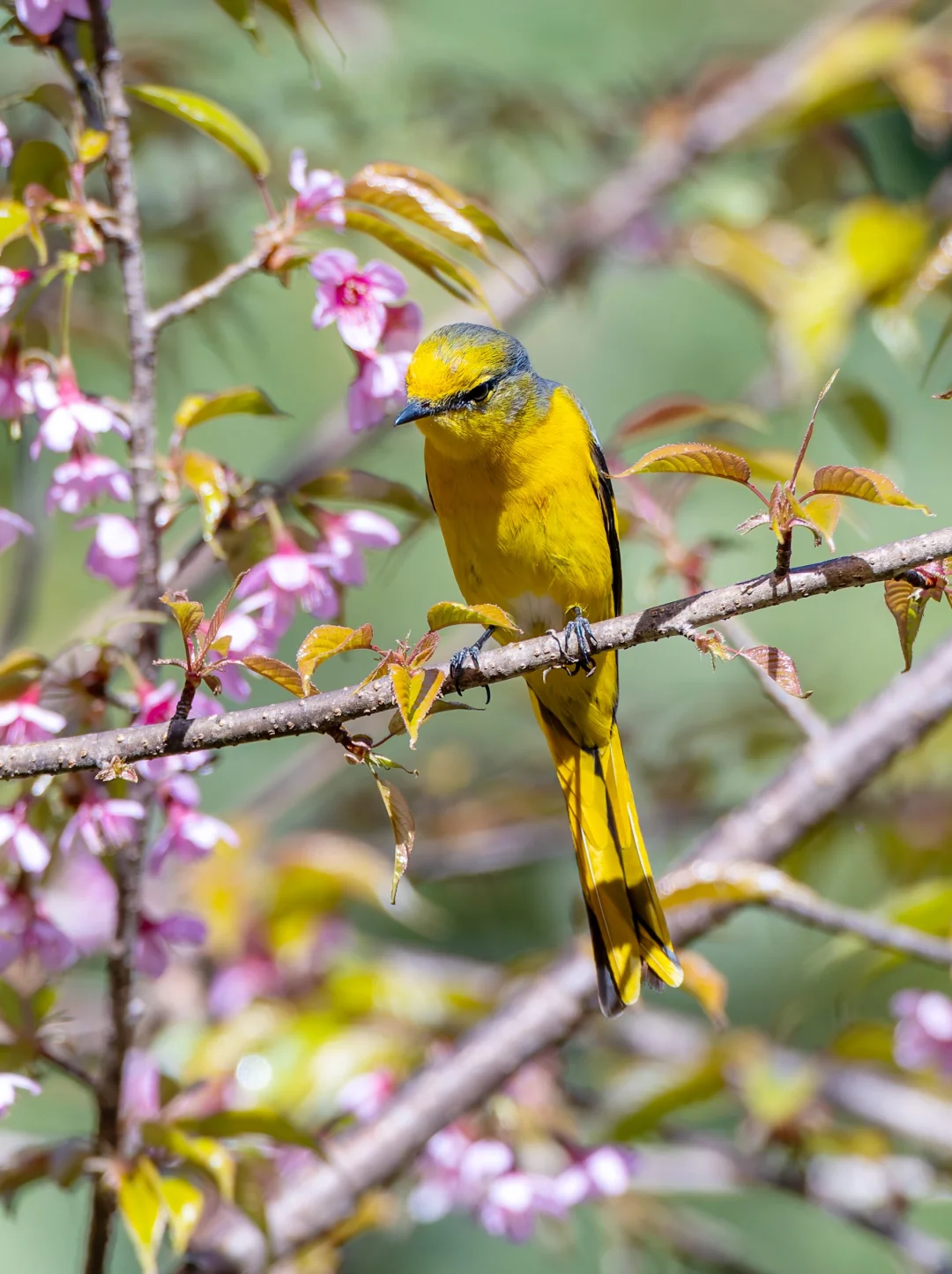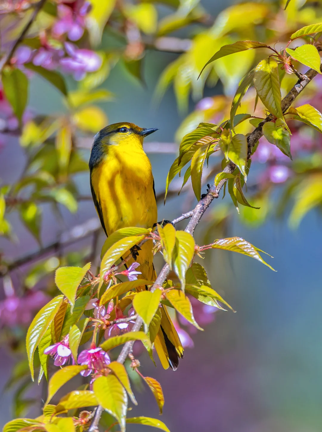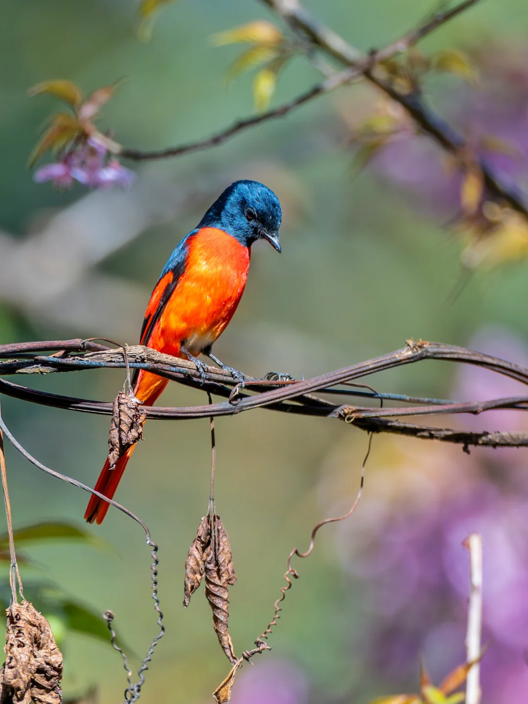 原创拍摄于2026.01 短嘴山椒鸟,Short-billed Minivet,雀形目鹃鵙科山椒鸟属。分布于喜马拉雅山脉至我国的西南地区。 短嘴山椒鸟也是有着艳丽的羽色,雄鸟是醒目的红黑配色,雌鸟灰黄相间。它们的体型较小,特别是嘴较短小,和同样黑色喉咙的赤红和长尾相比,翼斑是L形。雌鸟的额头到头顶是黄色的。 短嘴山椒鸟是不常见的留鸟。没想到这次能看到在云南樱花下穿梭跳动的短嘴山椒鸟,有一种属于春天的浪漫。