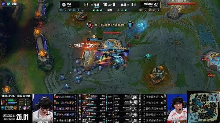 直播吧1月14日讯2026LPL第一赛段揭幕战,在褪去全神班光环的iG全程压制银河战舰WBG,首局取胜,吧友如何评价他们的发挥?