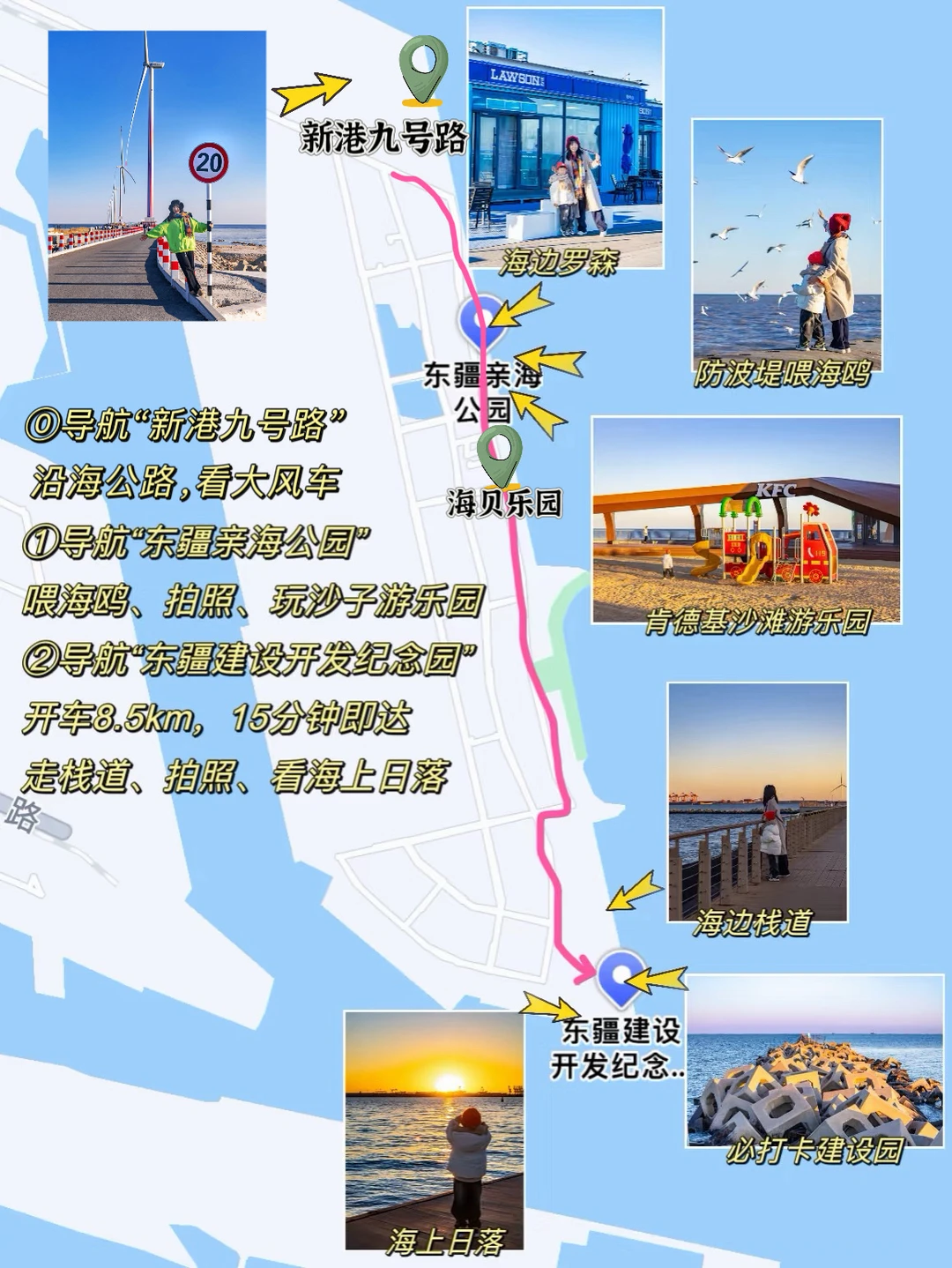 ✅建议下午1-2点左右先导航新港九号路,然后依次往南玩,快日落时正好看到“海上日落”的美景