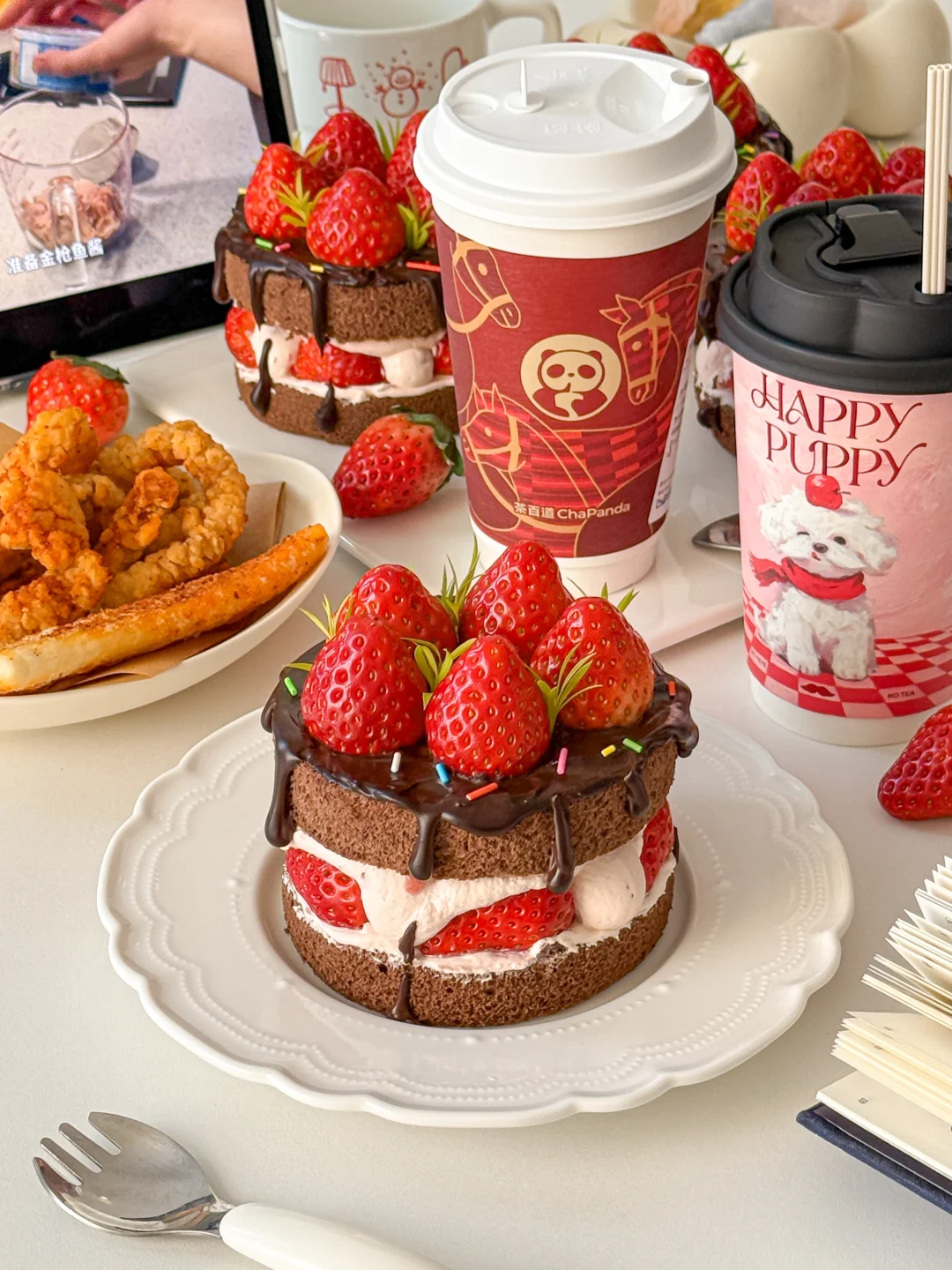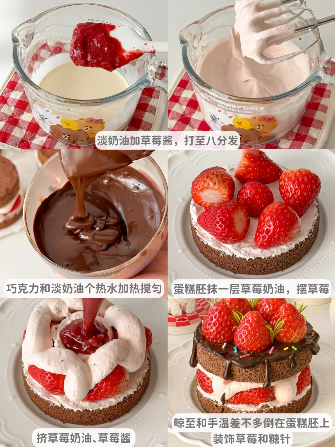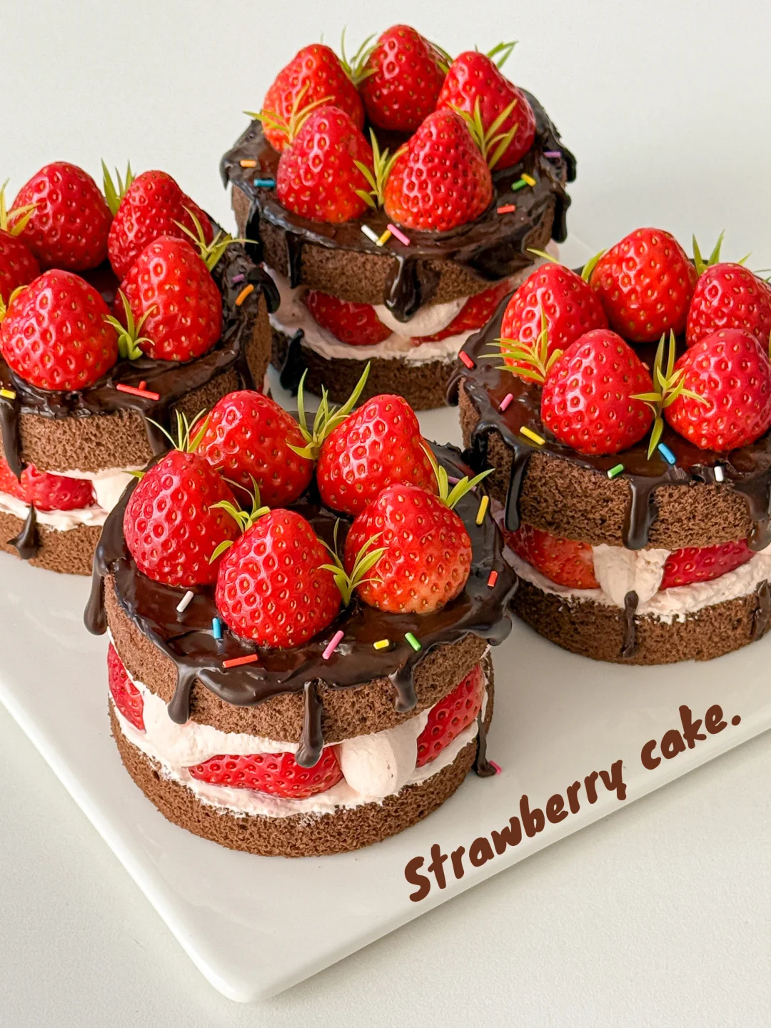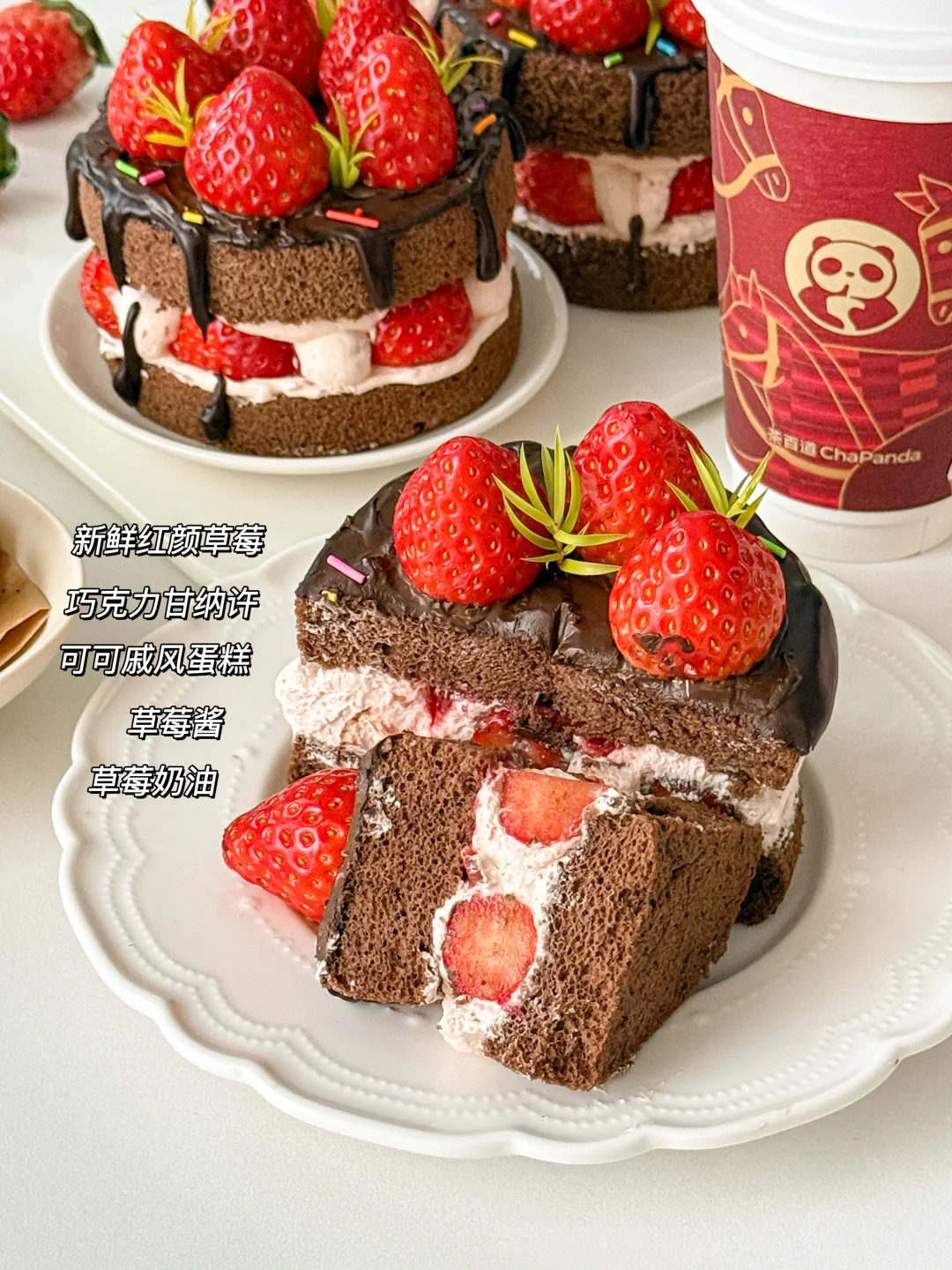 蛋糕绵软🍓搭配草莓奶油和巧克力甘纳许🍫