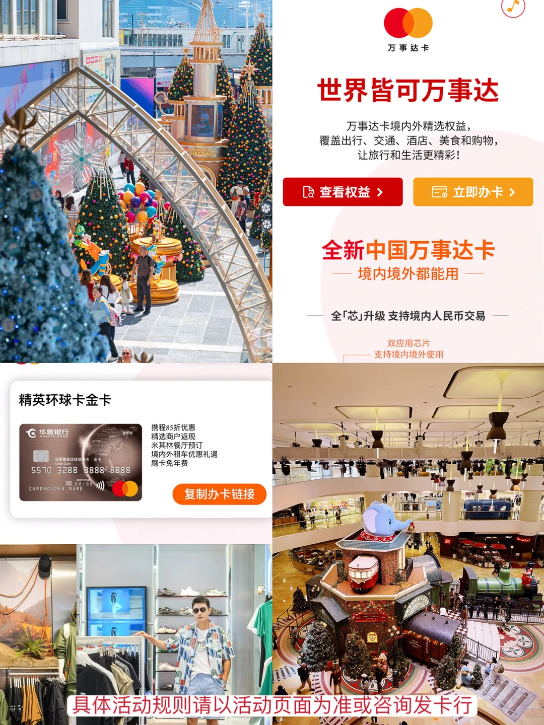 2⃣️香港是当之无愧的购物天堂,跨年+春节其间,百货免税店等活动多多,包括我出行必带的华夏银行万事达精英环球卡金卡,这张卡境内外都能用,刷卡就能免年费,有需要的话可以在万事达卡小🍊申请办卡。小🍊搜索香港还能查看更多万事达卡权益,像崇光百货、连卡佛、莎莎化妆品、新罗免税店都有满额返现,分分钟省出一顿午餐。
