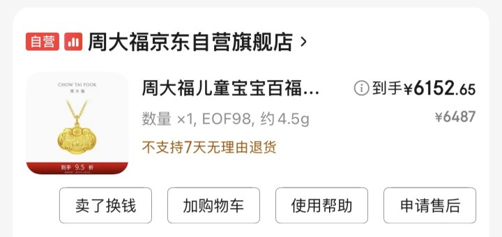 陈女士说,这个锁在购物车里躺了好几个月,越观望越下不了手。每天上午10点是周大福官方更新报价的时间,昨天她觉得实在不能再等了,趁客服还没上班改价,果断出手。
