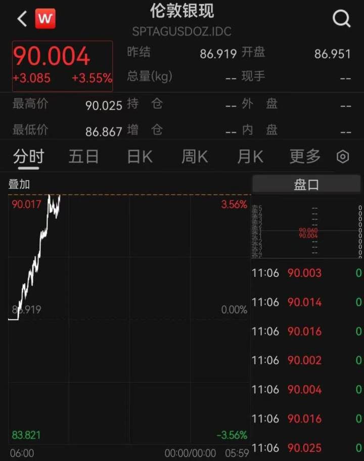 伦墩现货白银冲破90元/盎司