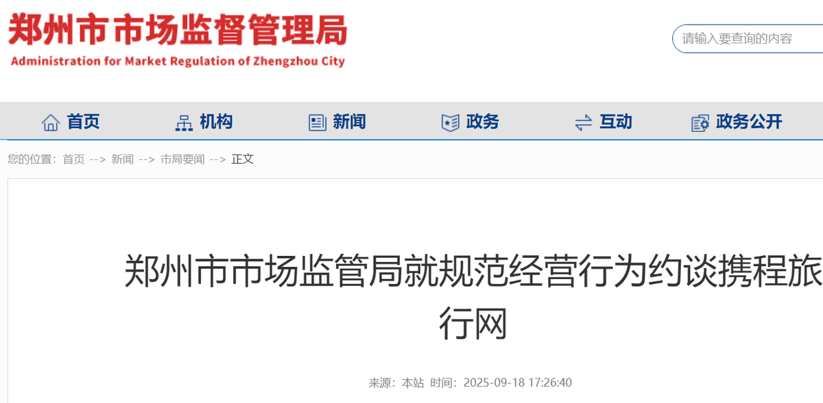 一个多月后的9月,郑州市市场监管局在专项检查中发现,携程在经营活动中存在违反《中华人民共和国电子商务法》的行为,主要涉及平台责任履行不到位和对平台内经营者管理不规范等问题,并依法进行了行政约谈。