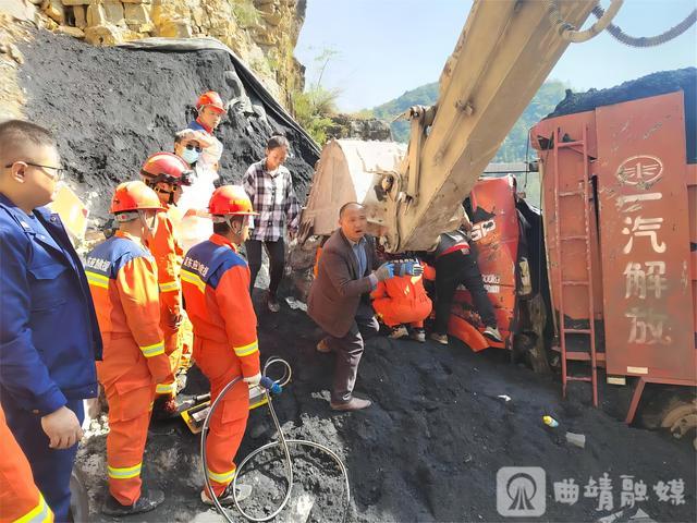 “先清理车头周围的煤,注意防止塌方!”“装载机用牵拉工具稳住车身,挖掘机分离车厢和驾驶室!”张中腊沉着冷静地指挥,分工清晰明确。工人们小心翼翼清理煤堆,机械车辆协同作业,二十多分钟后,被埋的驾驶室终于露了出来。