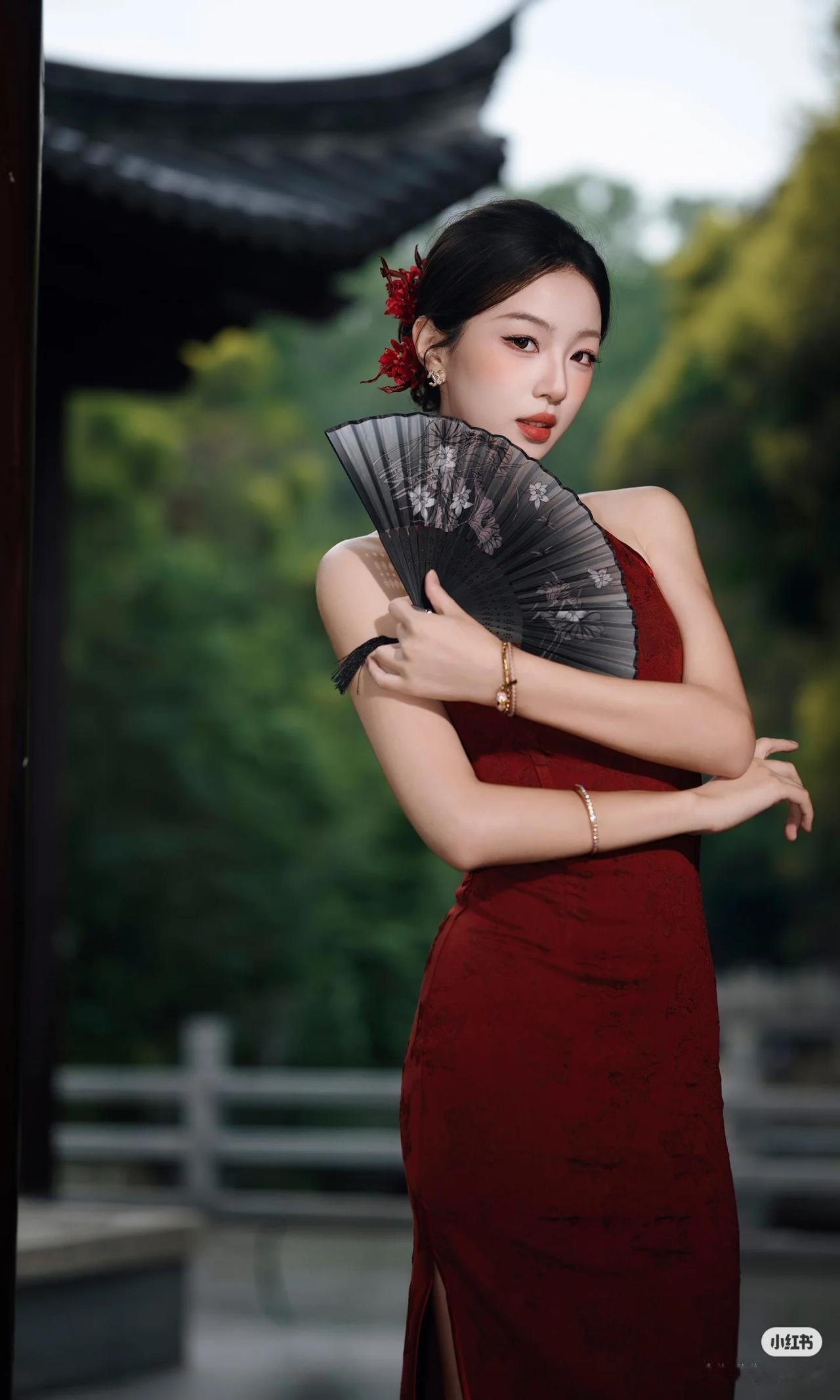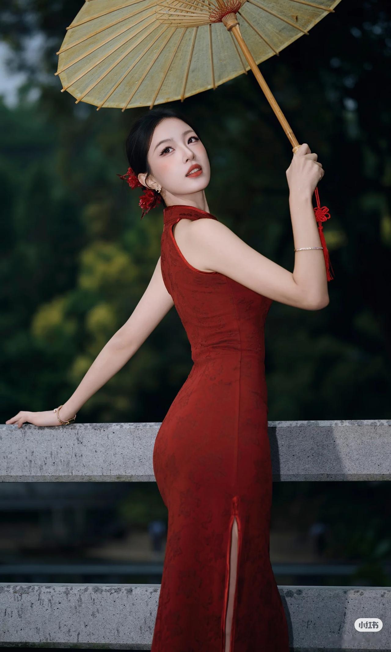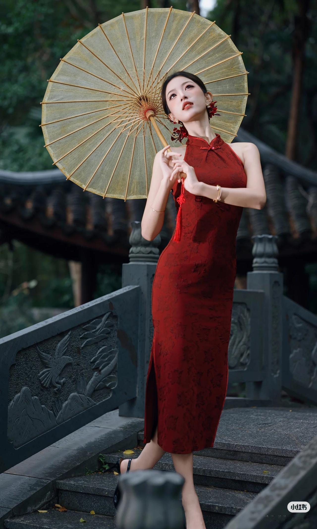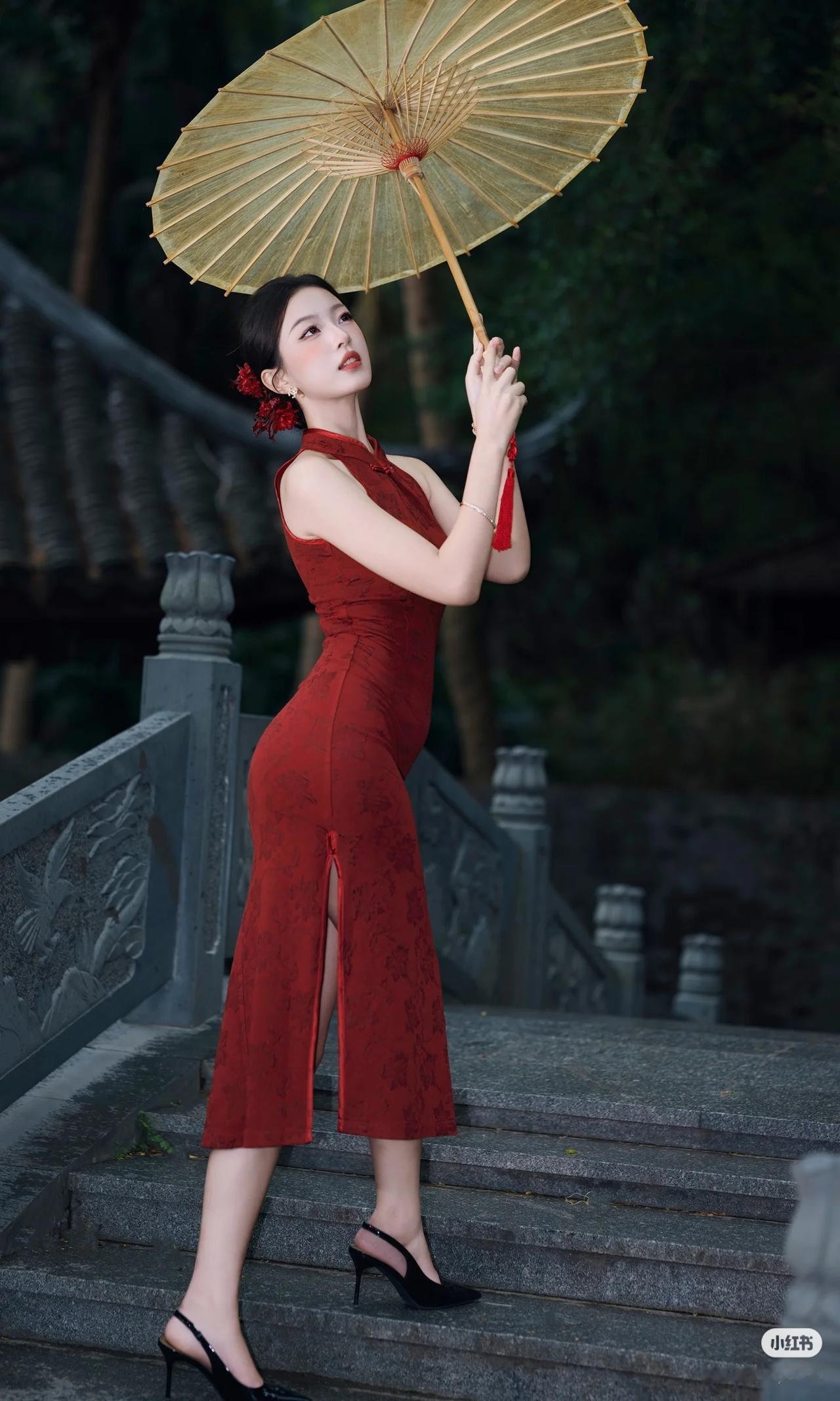 我的今日状态:😁轻松愉快 我这里的天气:☀️晴天 美女旗袍穿搭写真